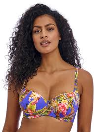 Make waves with the Tiger Valley Sweetheart Padded Bikini Top in a stunning Ultramarine hue. An energetic tropical print design pops against the cobalt blue base, this style also features a unique texture-look fabric that's smooth to the touch! The sweetheart neckline offers a flattering shape and enhanced cleavage, whilst the underwired, lightly padded foam cups provide support and a secure fit for all your beach adventures.