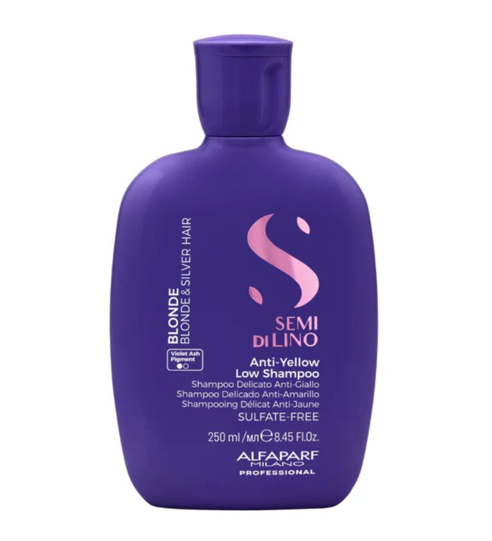 Alfaparf Semi Di Lino Blonde Anti- Yellow Low Shampoo is a gentle sulfate free shampoo for blonde and silver hair, designed to banish unwanted yellow/brassy tones. Suitable for use on both natural and colour treated hair.