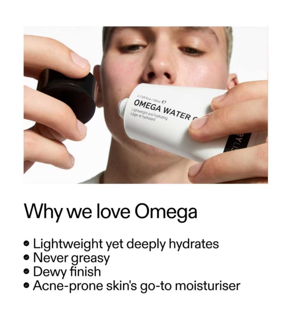 Moisturize: Follow with Omega Water Cream to help lock in moisture. Gently massage a raspberry-sized amount into the face and neck.