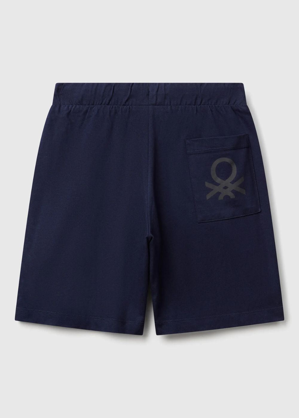 Shorts in pure cotton with a regular fit. Waist with inner elastic and drawstring, patch pocket on the back with printed maxi logo. Practical and comfortable, perfect for moving outdoors.