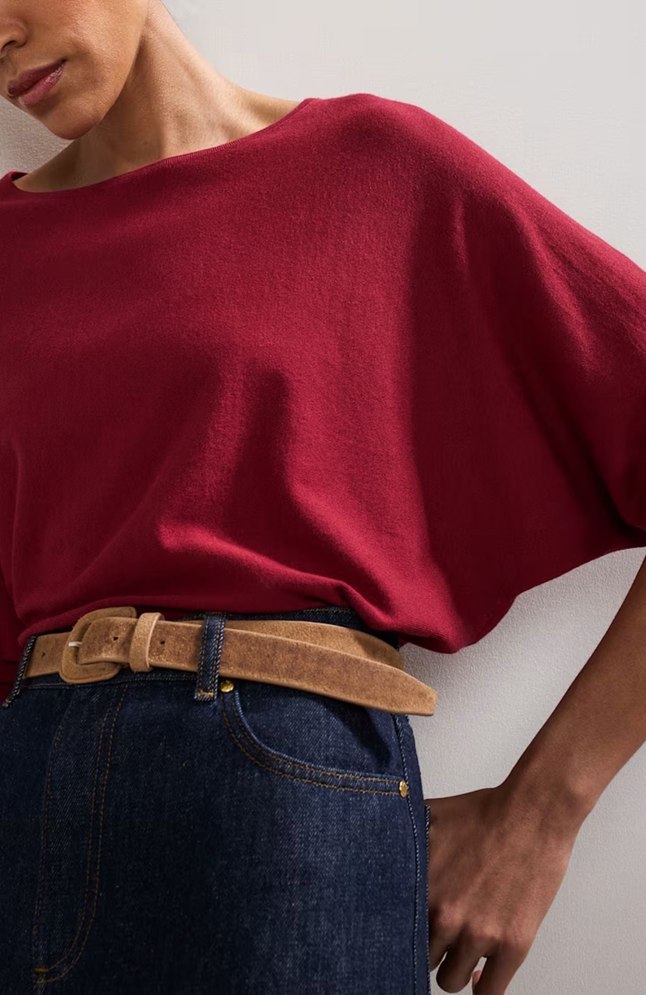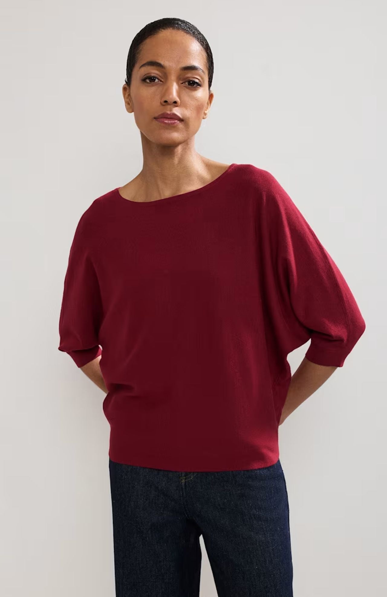 You asked, we listened. Our bestselling Cristine Jumper has arrived in a brand-new colourway. With a feminine slashed neckline and batwing 3/4 length sleeves, this wine-red jumper is sure to elevate everyday looks. Wear with your favourite jeans to effortlessly (and stylishly) transition from season to season.