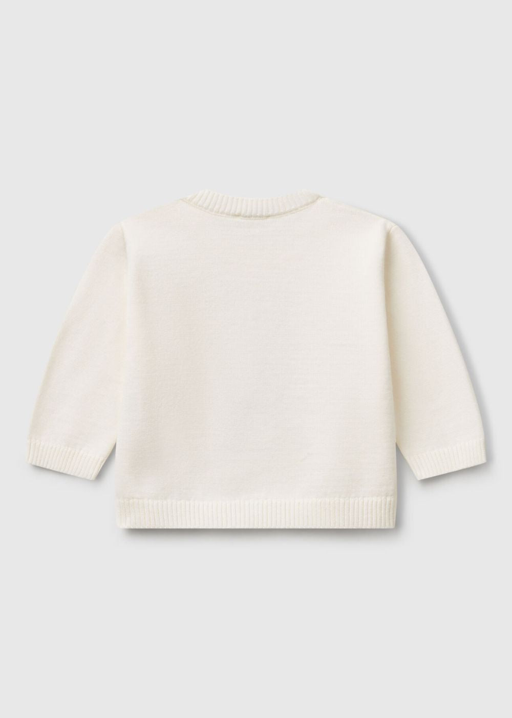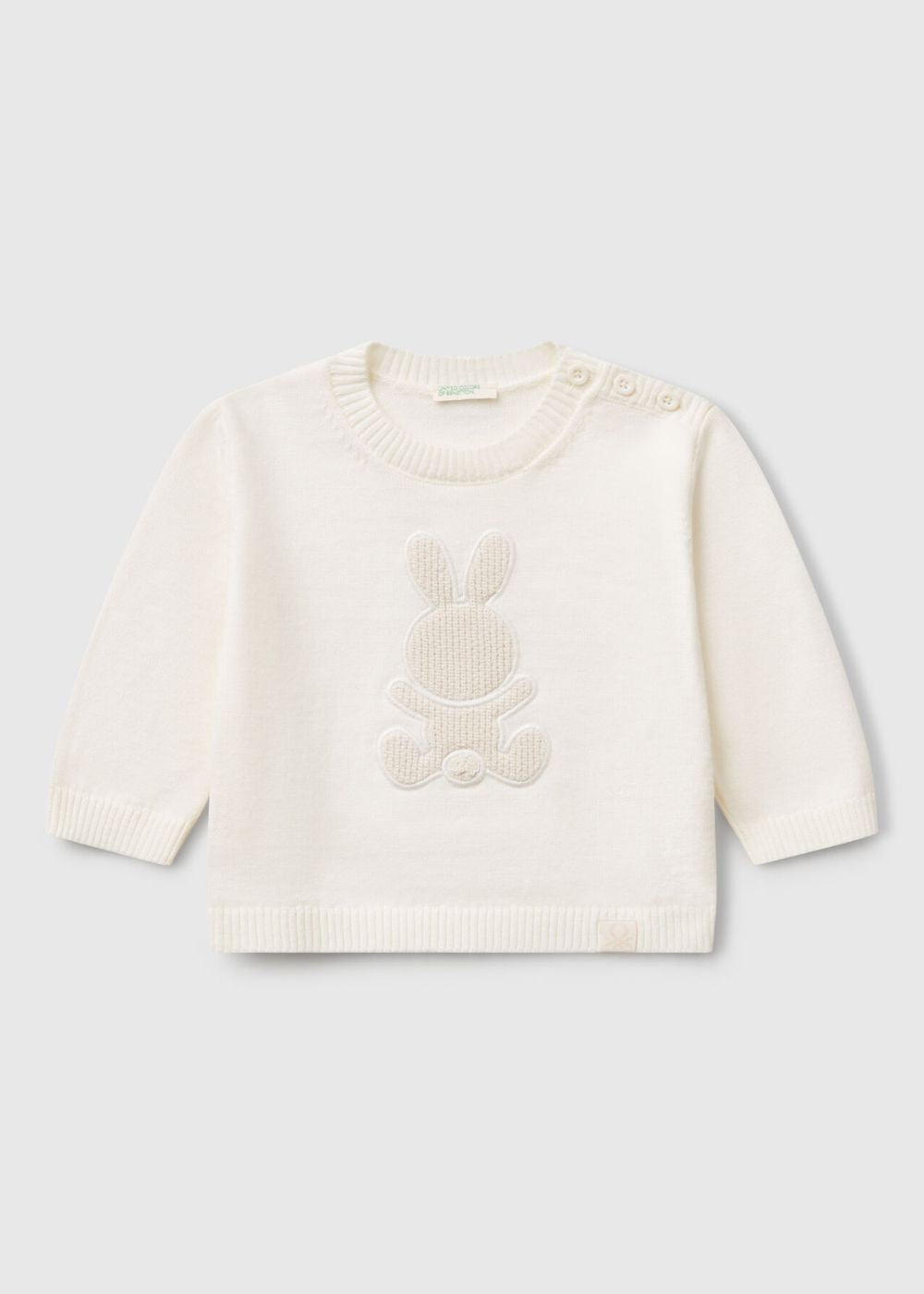 Long-sleeved crew-neck sweater in pure cotton. Cute bunny patch applied on the front, practical button opening on the left shoulder. An "Easy Care" garment that can be washed directly in the washing machine.