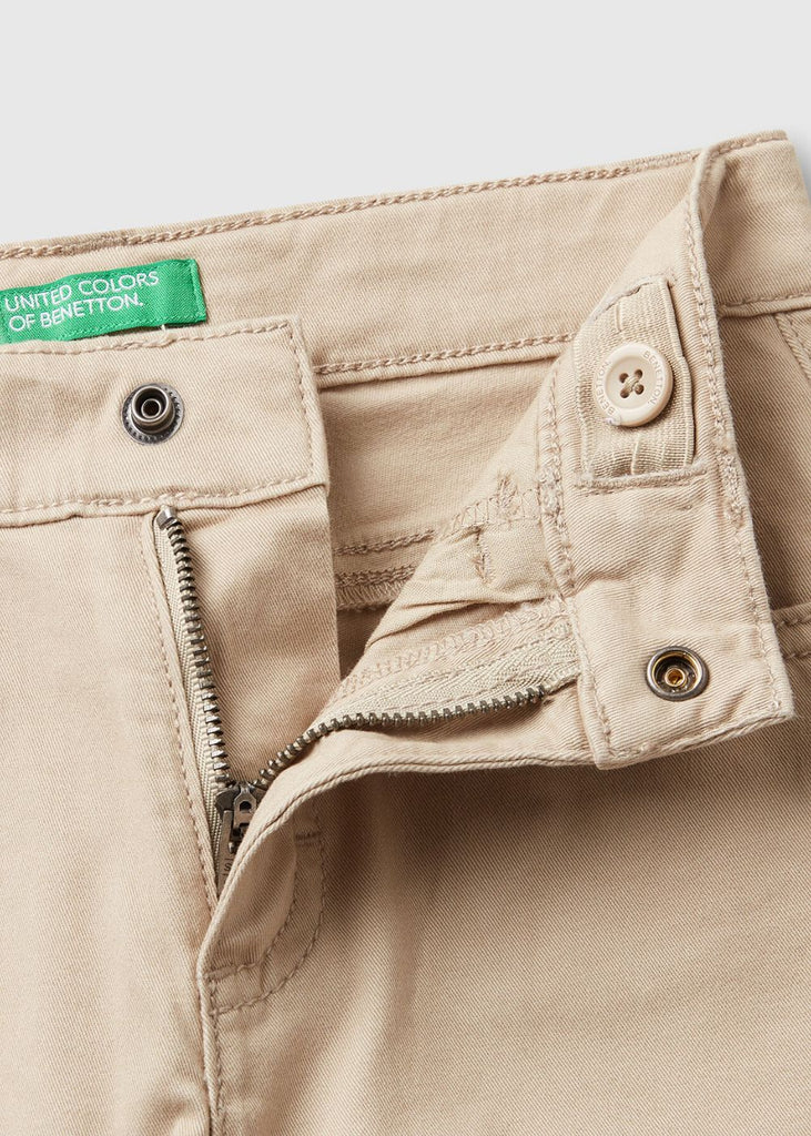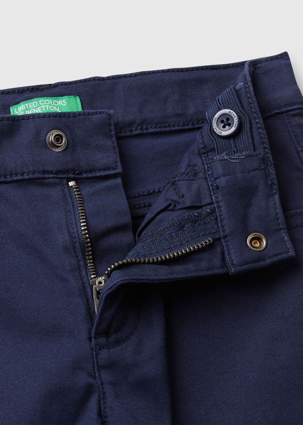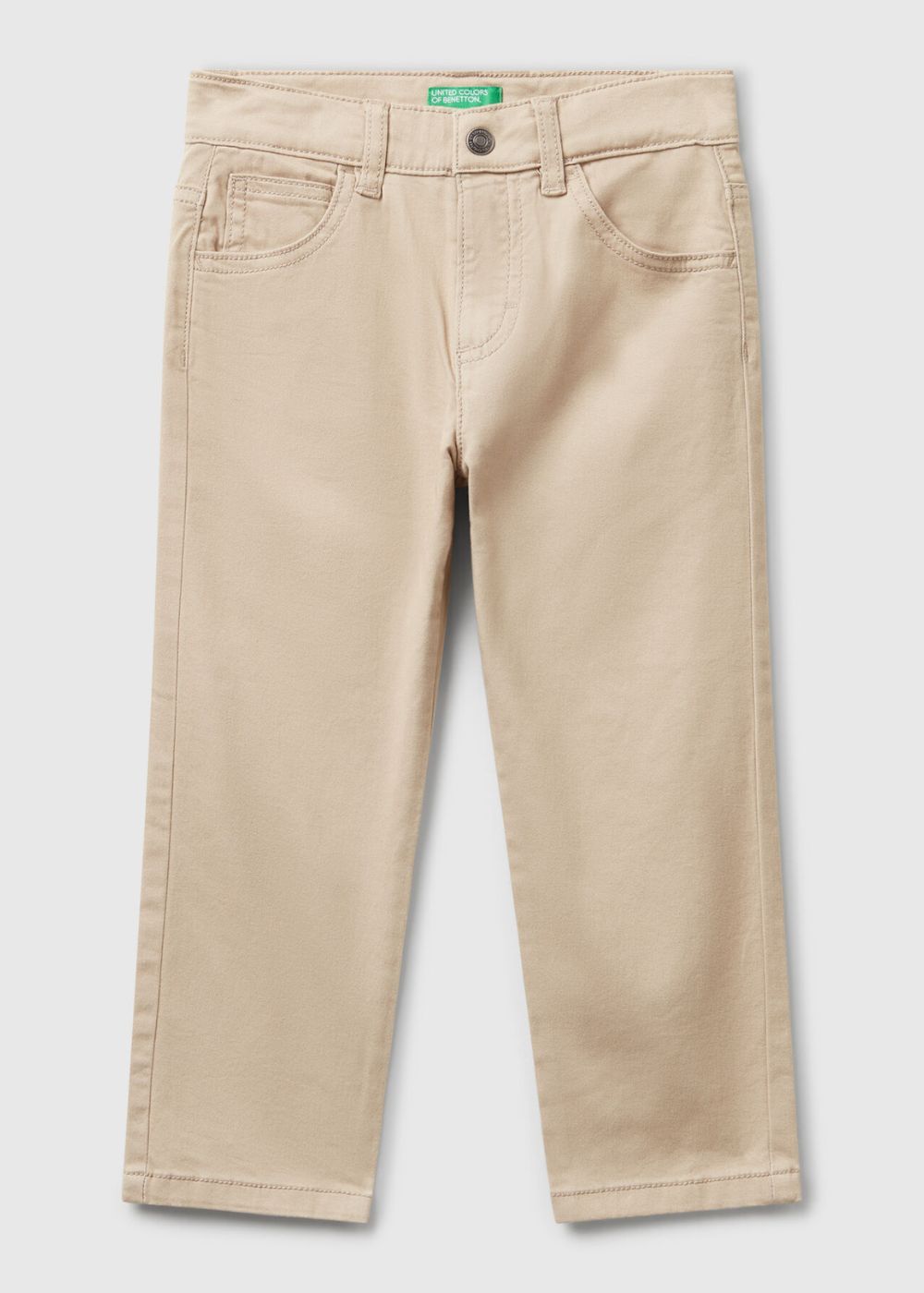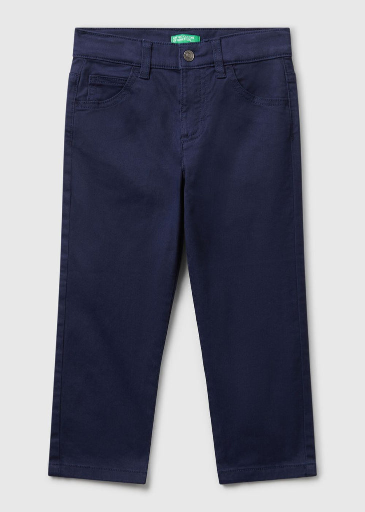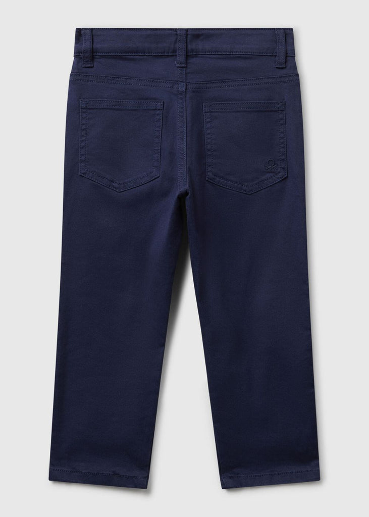 Long trousers in stretch soft cotton. Five-pocket design, zip and snap button opening. Internal adjustable elastic waistband. Embroidered logo on the back pocket. A great alternative to classic denim.