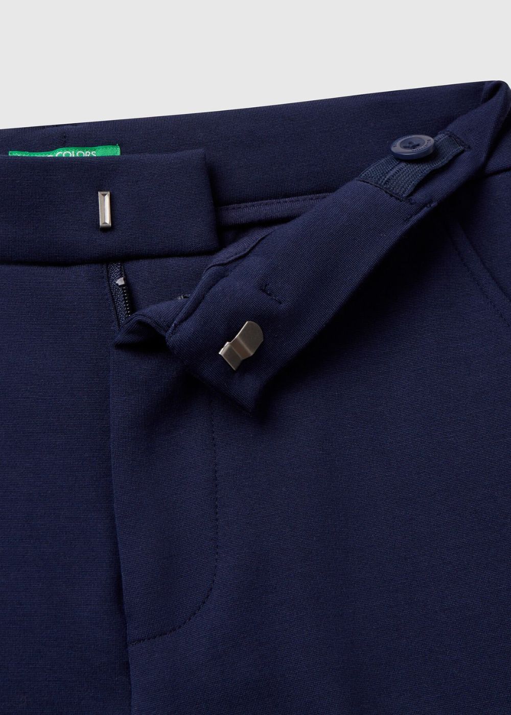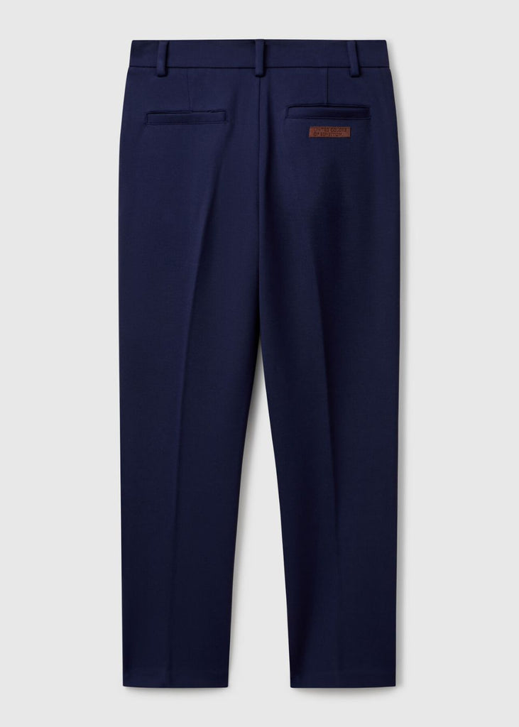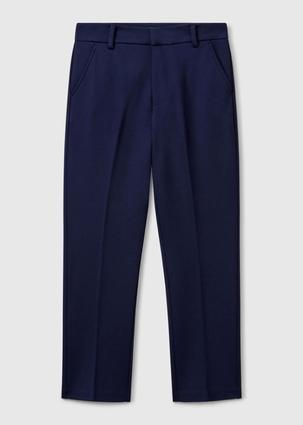 Long trousers in soft stretch viscose blend fabric. Relaxed leg with front ironed crease. Zip and button opening, front pockets and welt pockets on the back. Perfect with a blazer for feminine and modern outfits, to be worn at ceremonies and special occasions.
