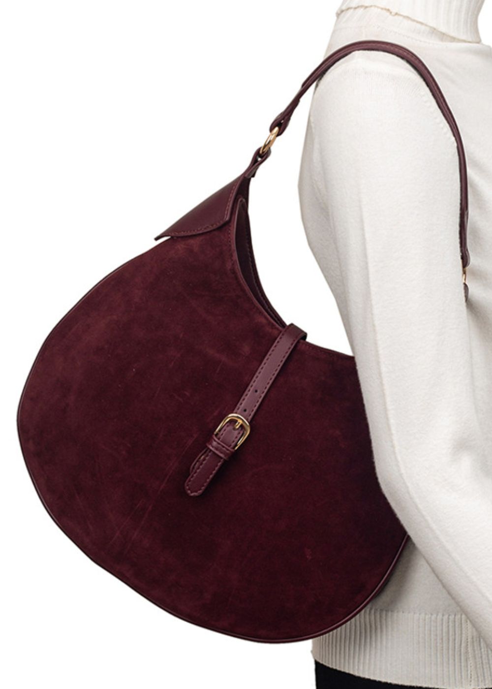 The Amandine Curved Hobo offers a refined blend of style and functionality with its elegant belt detail and spacious design, measuring approximately 35 x 30 cm. Its fully zipped main compartment ensures secure storage, while additional zip and slip pockets provide organized space for your essentials. Perfect for those who appreciate sophisticated everyday accessories.