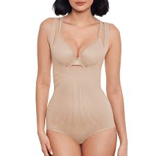 Introducing the Miraclesuit Modern Miracle Torsette Bodybriefer in Natural. Offering extra firm control and shaping, it flattens the tummy, slims the waist, hips, and back for a streamlined silhouette. With patented Wonderful Edge® technology, it ensures no lines or ride-up. LYCRA® FitSense™ technology adds lightweight, targeted support, while targeted control zones provide comfort and functionality without bulkiness. Enjoy unrestricted movement and all-day comfort with adjustable straps and an open bust design to wear with your favorite bra.