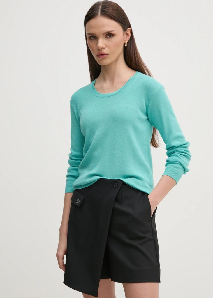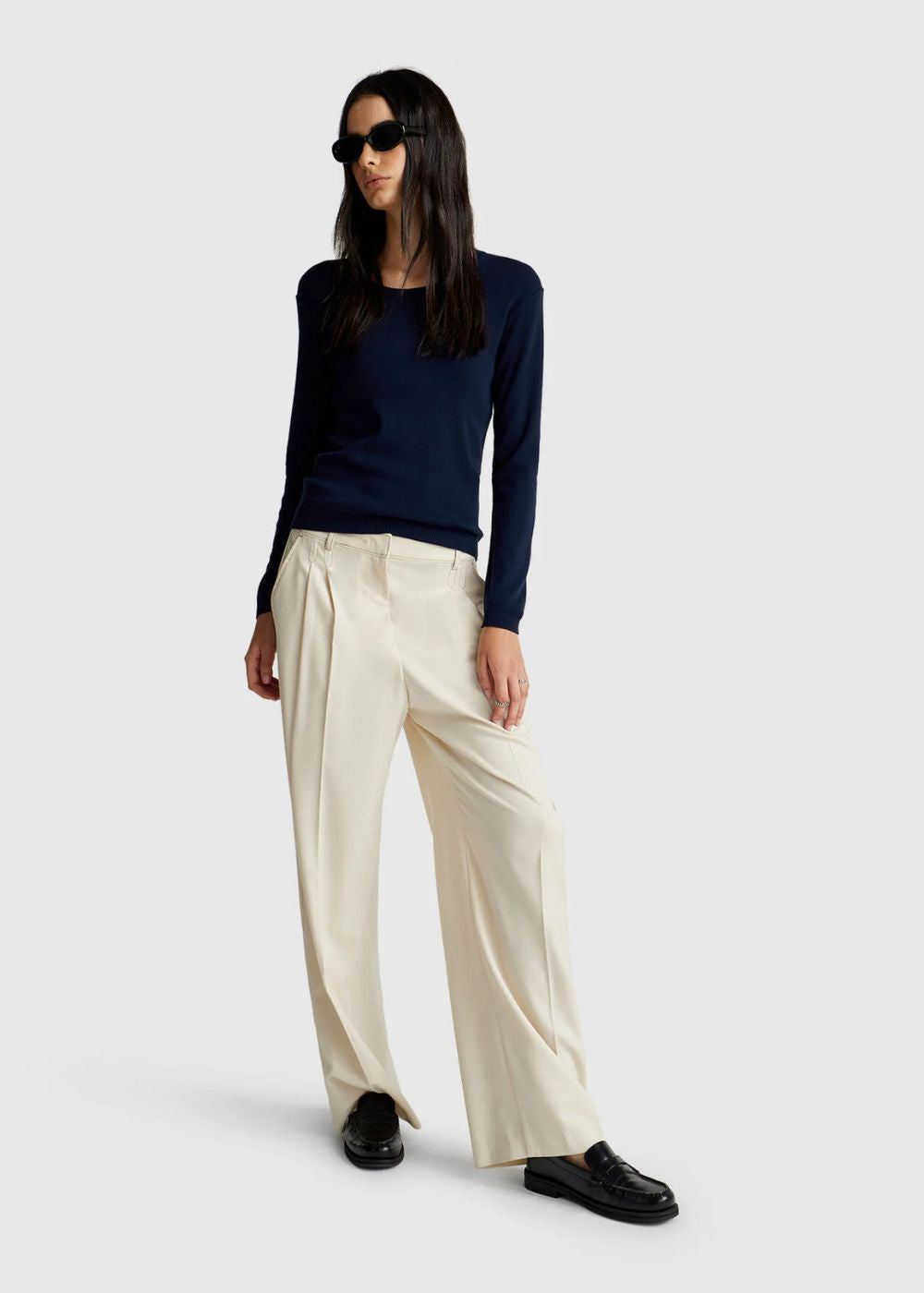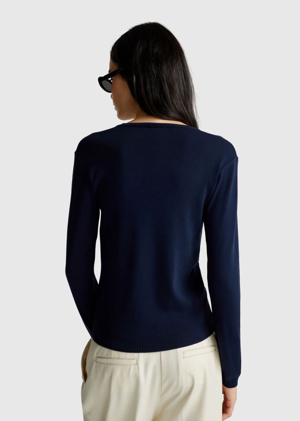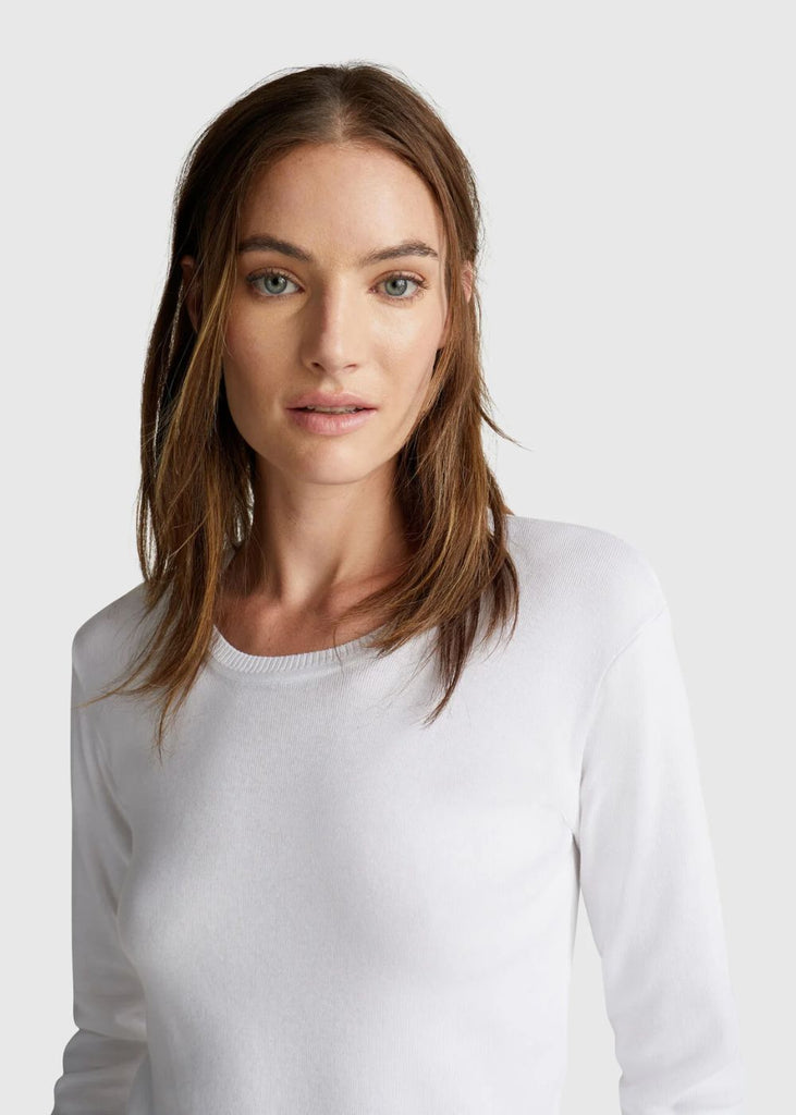 Long sleeve crew neck sweater in pure cotton. Basic, essential and perfect for every combination.