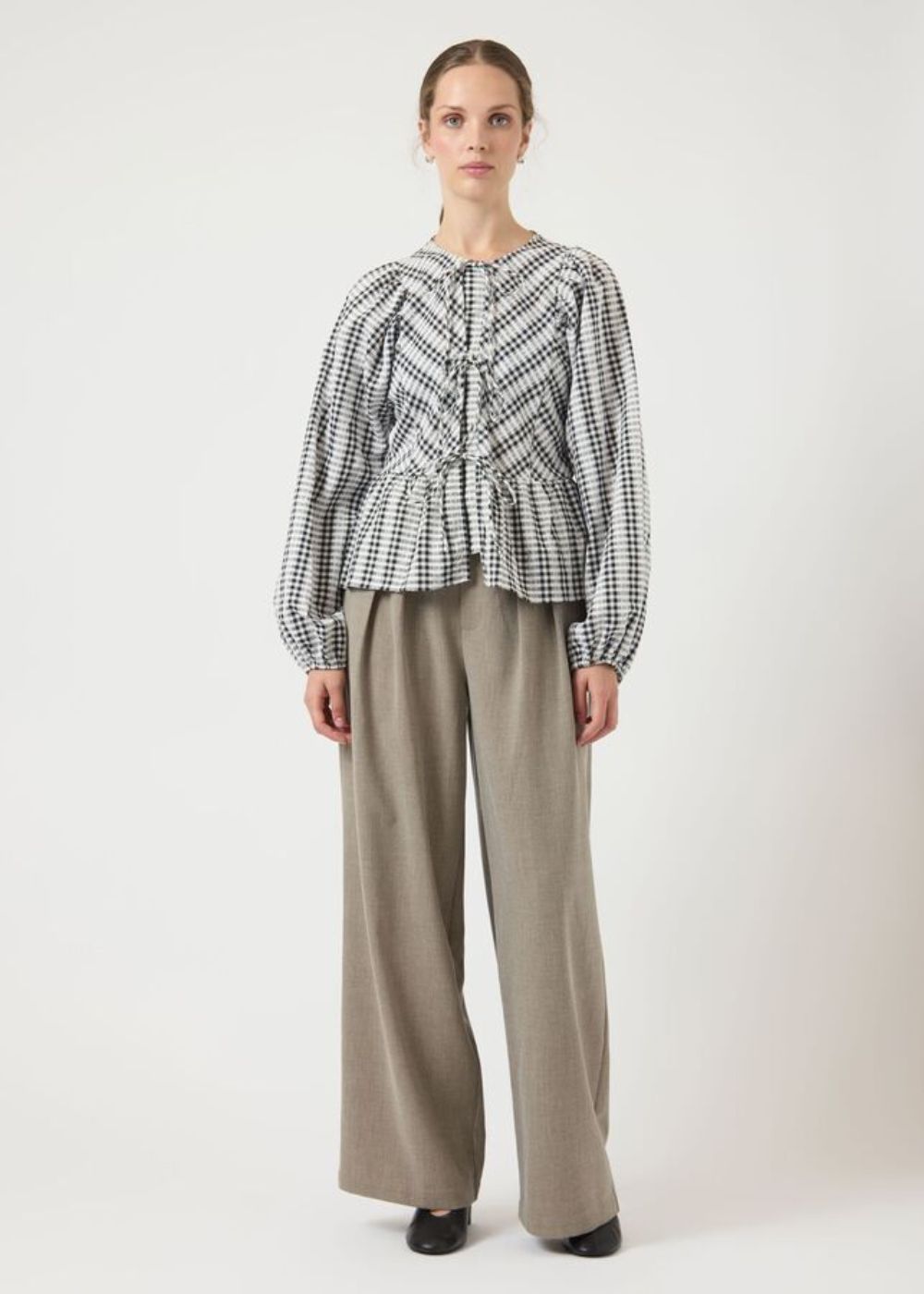 This elegant peplum top showcases a refined round neckline and a flattering regular fit, designed to complement your silhouette with subtle sophistication. The charming bow detail adds a touch of grace, making it an ideal choice for both polished workwear and stylish social occasions. Crafted to combine timeless style with modern femininity.