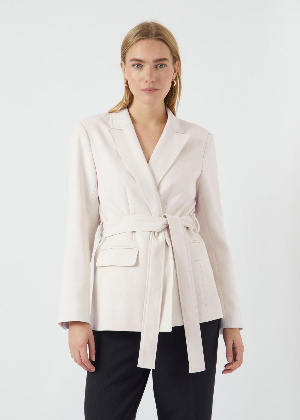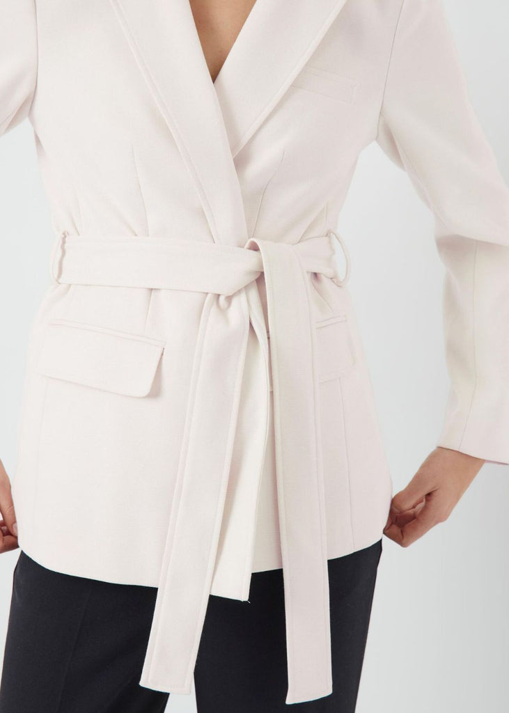Crafted from durable polyester, the YASSALLY LS Blazer Jacket blends timeless elegance with practical design. Featuring a refined reverse neckline and buttoned cuffs, it offers a tailored fit enhanced by a waist belt. Front pockets provide subtle utility, while a back slit ensures comfortable movement. The wrap fastening adds a sophisticated touch, making this blazer a polished addition to any wardrobe.