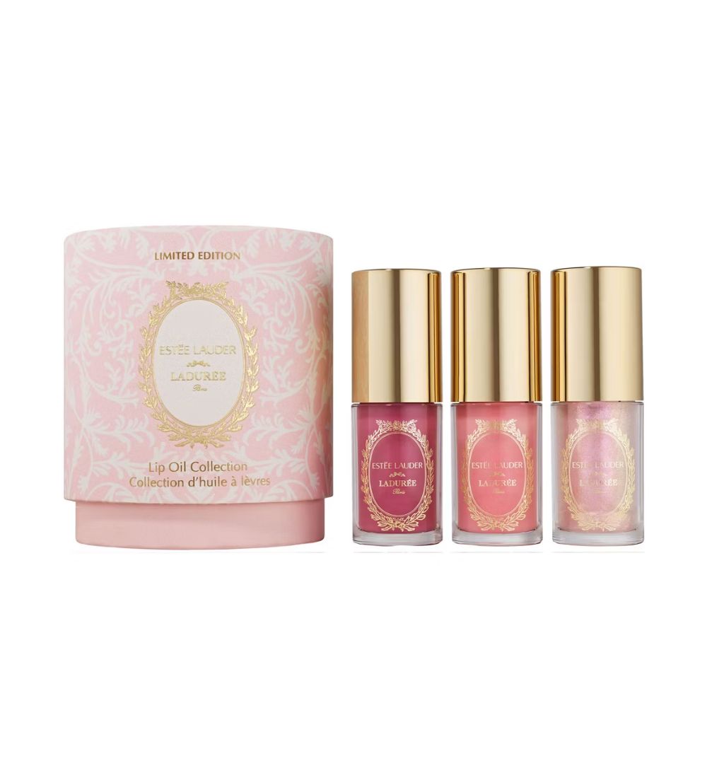 Description: This one-of-a-kind collection blends the decadent allure of Ladurée’s confections with the sophistication of Estée Lauder’s iconic beauty expertise. This limited-edition collection includes three limited edition lip oils, all full-size. Enjoy 12 hours of cushioning hydration with a sheer finish.
