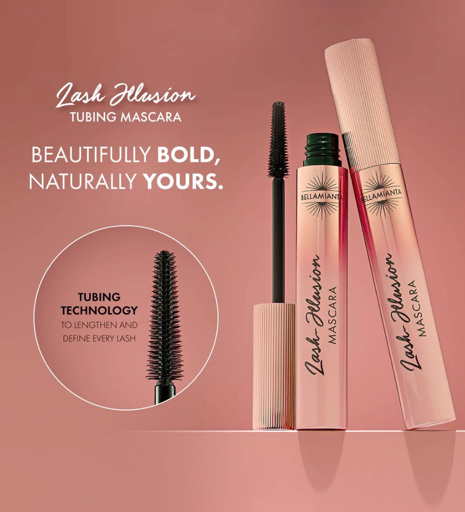 Bellamianta Lash Illusion Tubing Mascara is the ultimate false lash effect mascara designed to deliver instant length, weightless volume, and 24 hour wear with its smudge proof and waterproof formula. Unlike traditional mascaras, tubing mascara wraps each lash in flexible, water resistant polymer tubes for long lasting, flake free wear that removes effortlessly with warm water. This high performance mascara is available in Black, Brown and Burgundy, offering versatile shades to suit every look. The curved silicone wand with 200 precise bristles lifts, curls, and extends each lash from root to tip for a fuller, eye opening effect. Infused with Vitamin E and B5, the nourishing and conditioning formula strengthens lashes while providing a clump free, ultra smooth application. The highly pigmented formula delivers intense black definition, while its moisturising, skin identical ingredients ensure long lasting, healthy, and voluminous lashes. Whether you prefer a natural or bold lash look, this mascara offers complete volume control for stunning, dramatic results every time.