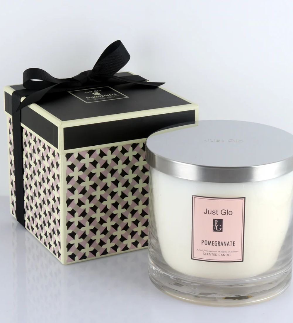 Jenny Glow Extra Large Candles inspired my Jo Malone Pomegranate and Tom Ford Black Orchid Fragrances. 3 wick. 1400g
