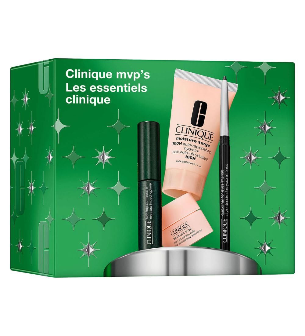 Description: A collection of Clinique skincare and makeup, featuring four most-loved minis. Delivers deep hydration, eye care, bold lashes, and defined eyes in one set.