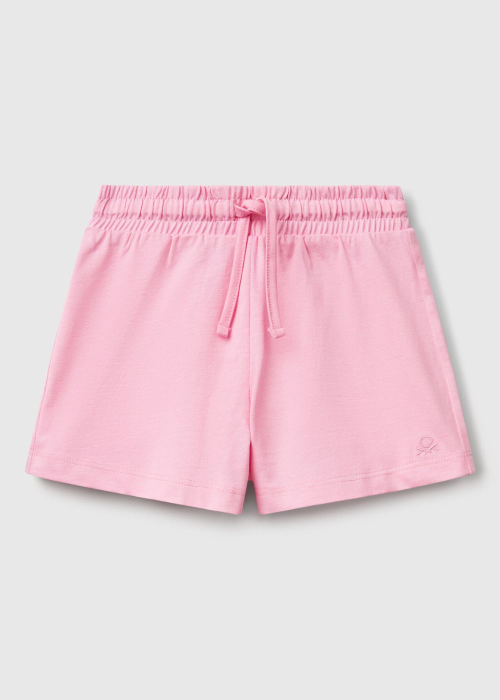 Short trousers in pure cotton with a warm texture. Waist with internal elastic and drawstring, clashing embroidered logo on bottom left. Regular fit, ideal for everyday wear.