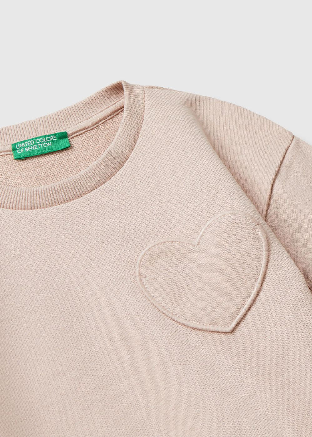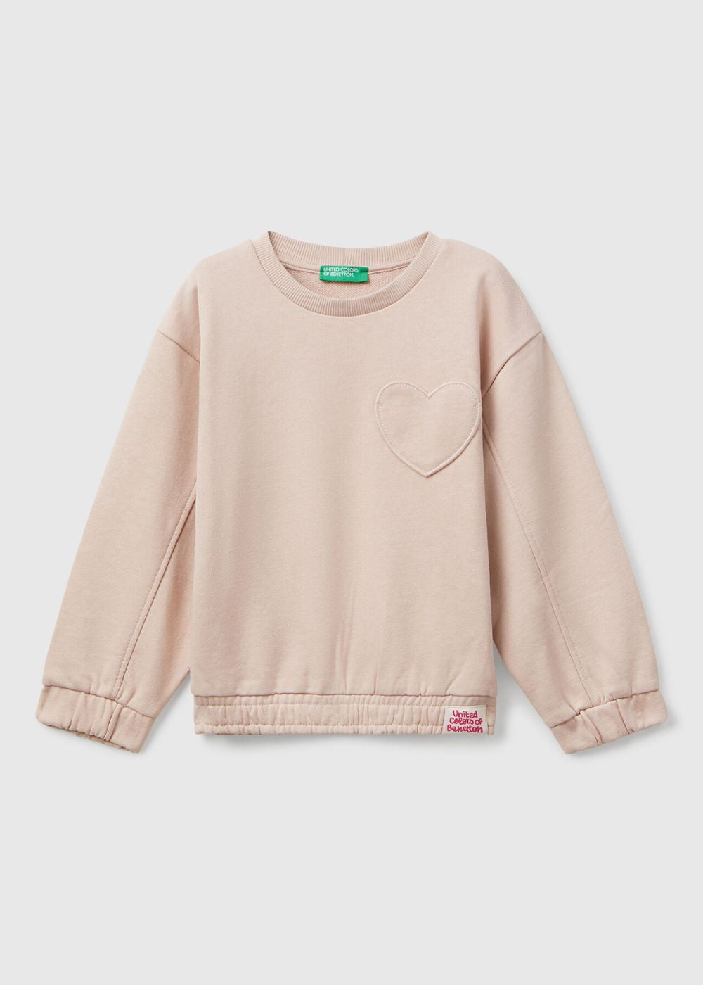 Crew neck sweatshirt in soft cotton stitch fabric. Long sleeves and heart patch applied on the chest. Cuffs and bottom with inner elastic. For everyday and feminine looks.