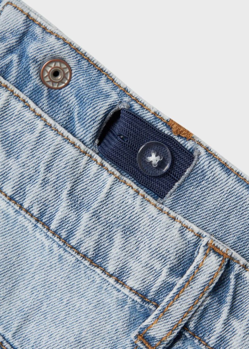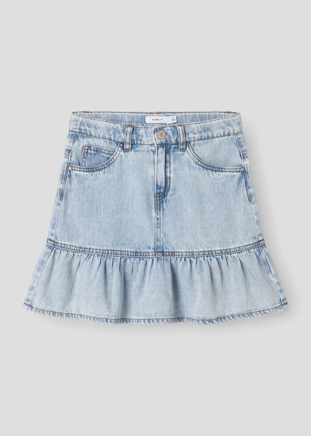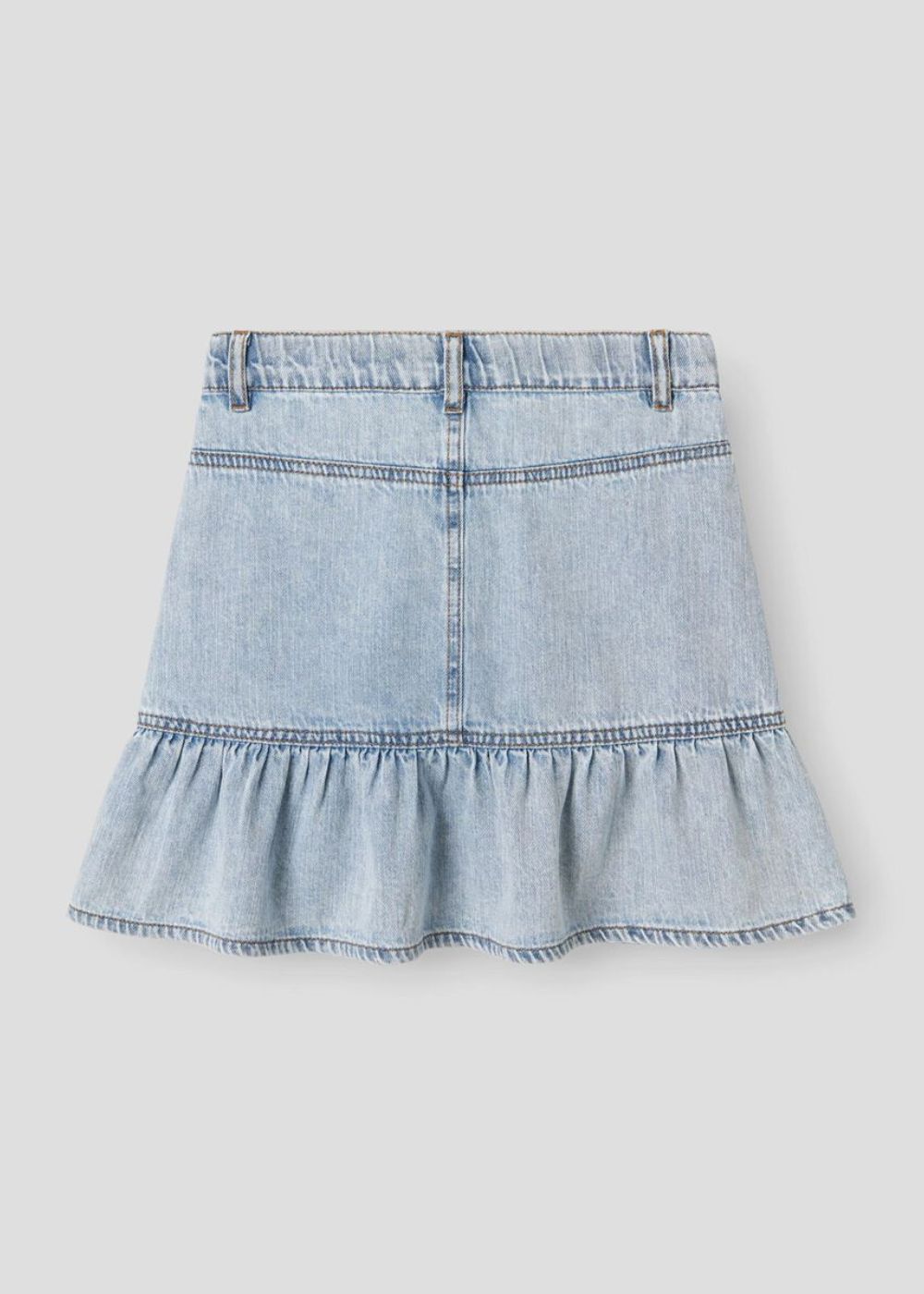 Craft a refined and comfortable look for your child with this denim skirt, designed for everyday wear. Made from durable woven fabric, it features subtle abrasions for a unique finish. Practical front pockets, a hook button and zip fly fastening, and an adjustable waist ensure both style and fit. Rivets and detailed stitching add a sophisticated touch to this versatile piece.