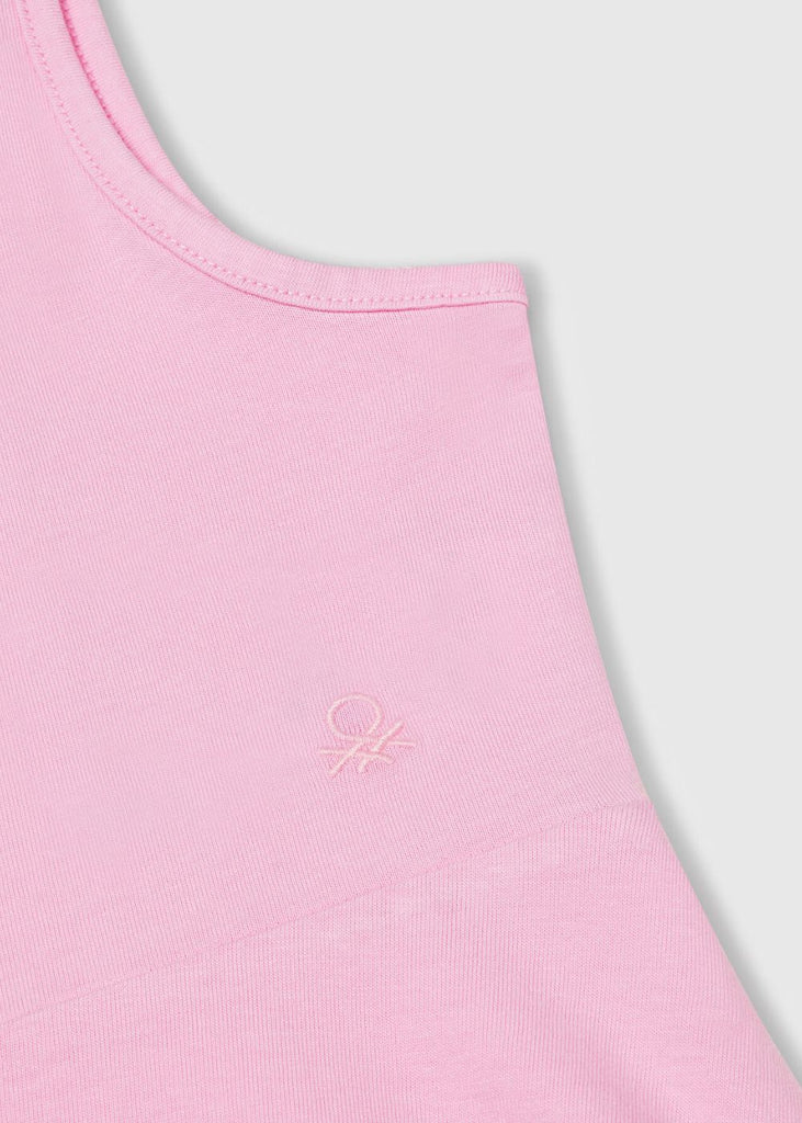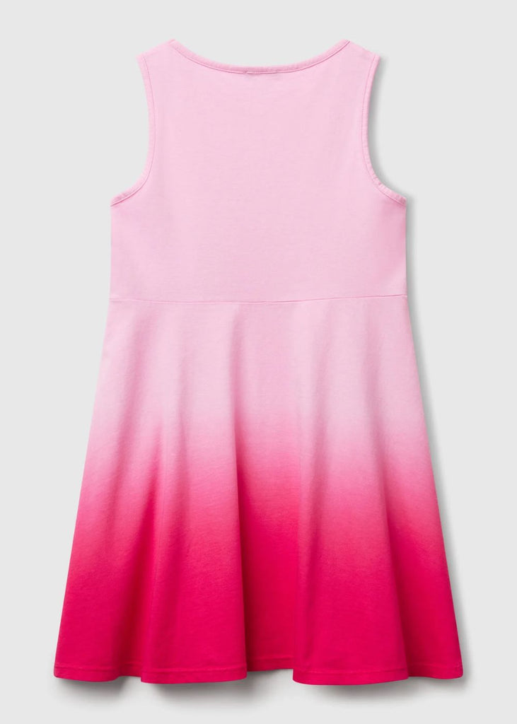 Sleeveless dress in soft pure cotton fabric. Round neckline, fitted waist and flared skirt. Faded look obtained through a particular dyeing process that makes each garment unique.