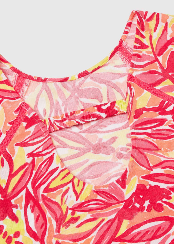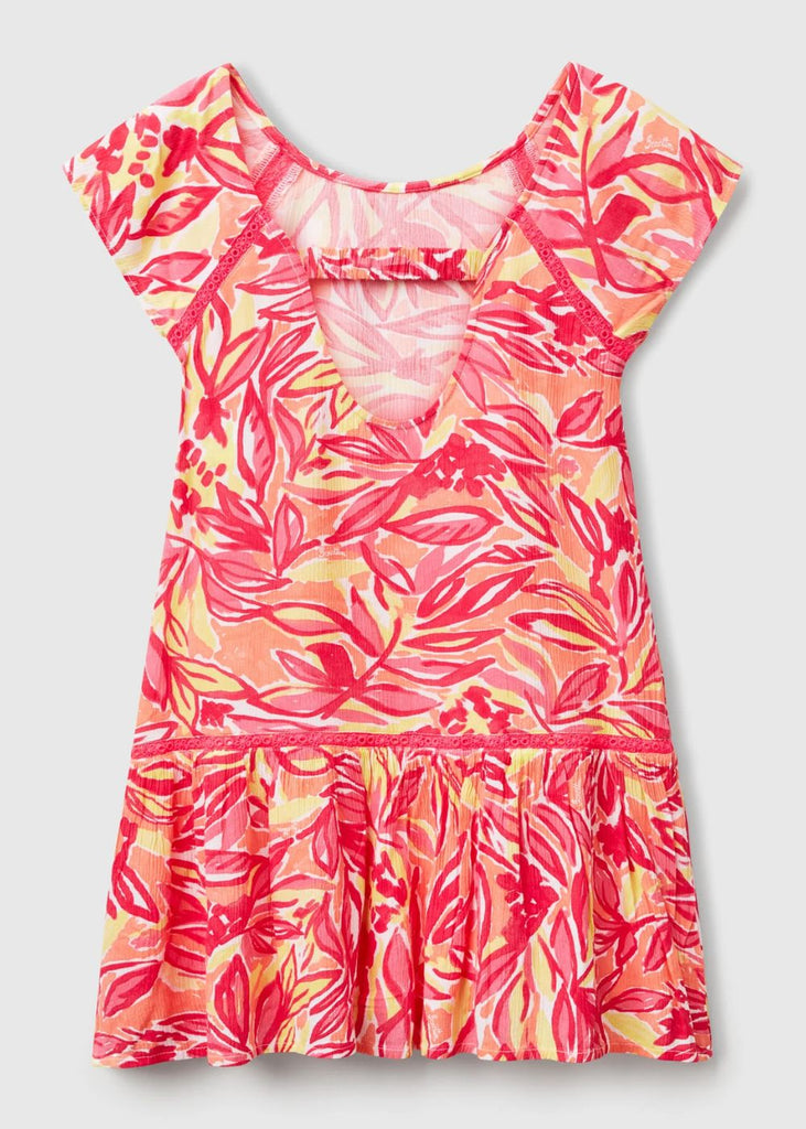 Dress in pure viscose crepe fabric with a relaxed and flared fit. Short raglan sleeves, round neck on front and V-neck on back. Trendy yet feminine, to brighten up any day.