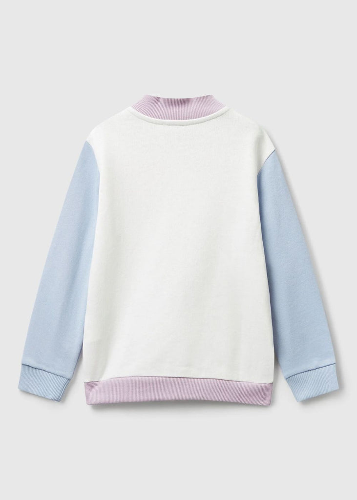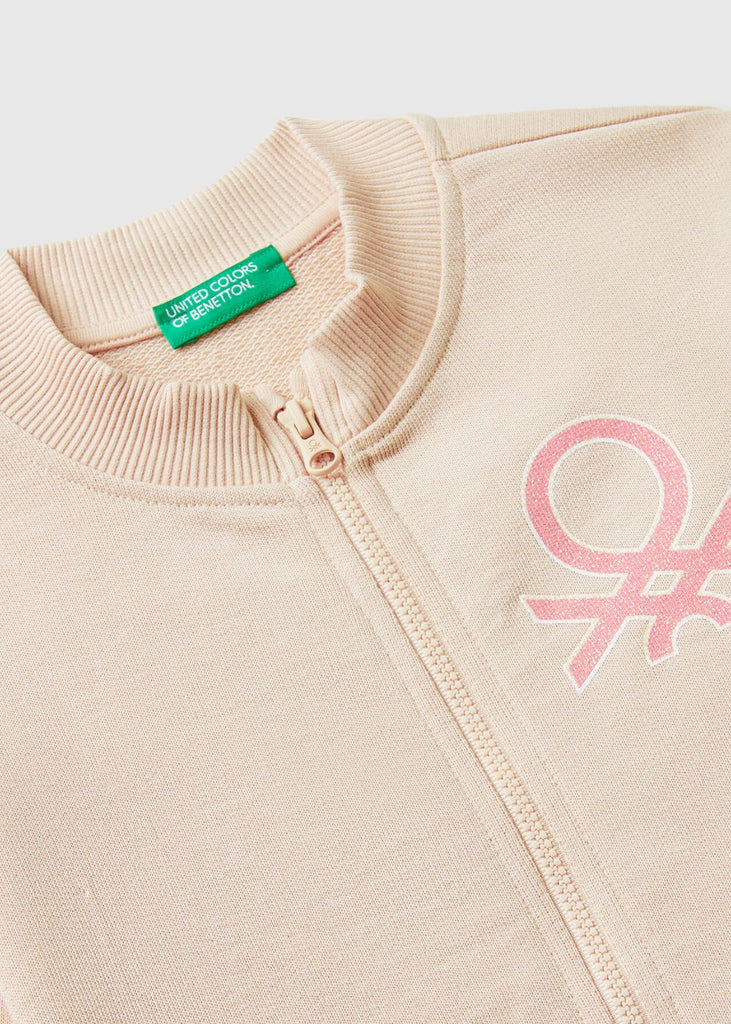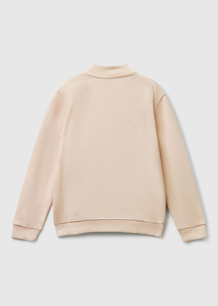 Long sleeve sweatshirt in organic cotton with a firm yet lightweight feel. Collar, practical zip opening, front patch pockets and glitter logo print. This garment is made from 100% OCS certified organic cotton. CERTIFIED BY ICEA - ICEA - TX - 611. Products certified according to the Organic Content Standard (OCS) contain independently verified organic content at every stage of the supply chain, from the recycling to the finished product.