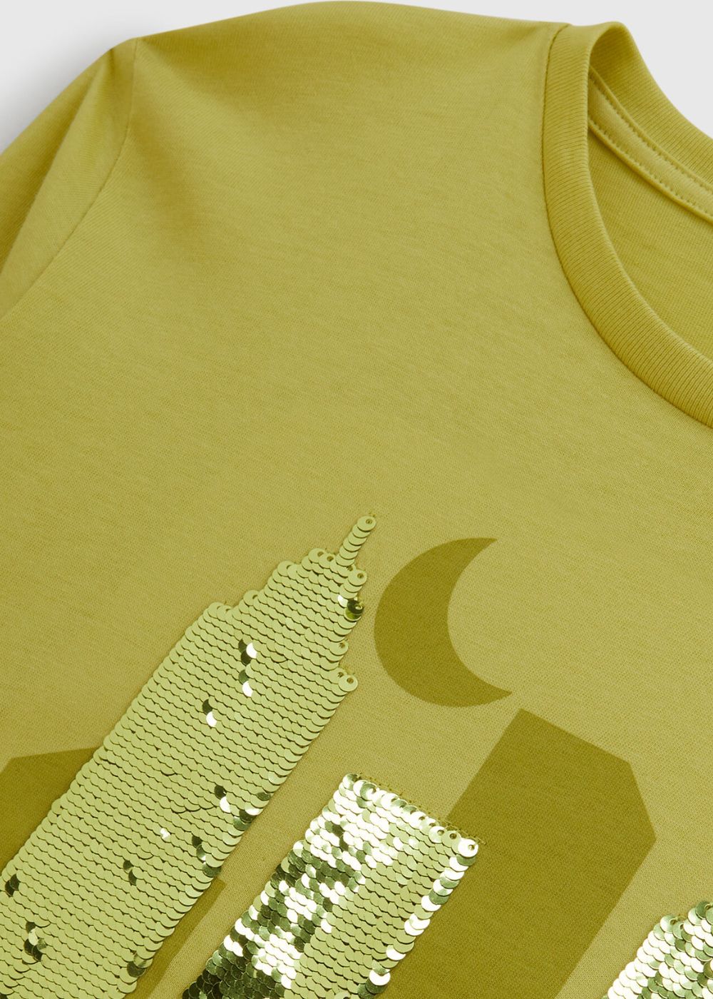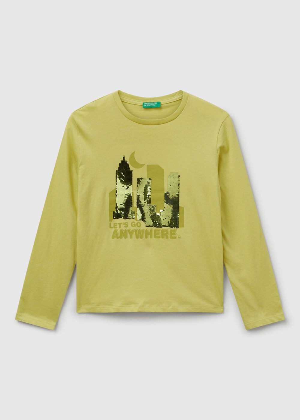 Regular fit long sleeve crew neck t-shirt in organic cotton. Fun and sparkly, with a sequined print and graphics embroidered on the front. This garment is made from 100% OCS certified organic cotton. CERTIFIED BY ICEA - ICEA - TX - 611. Products certified according to the Organic Content Standard (OCS) contain independently verified organic content at every stage of the supply chain, from the recycling to the finished product.