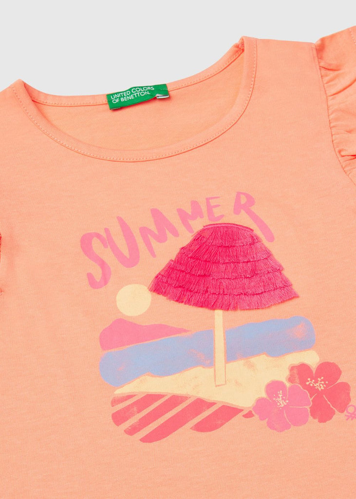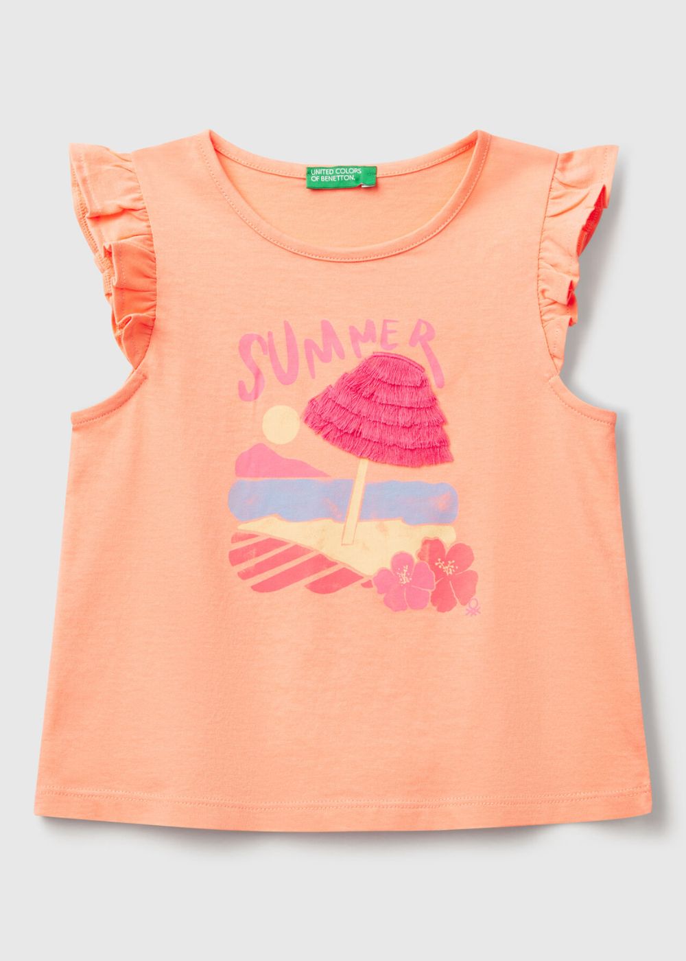 Regular fit crew neck tank top with cap sleeves and print on the front. This garment is made from 100% OCS certified organic cotton. CERTIFIED BY ICEA - ICEA - TX - 611. Products certified according to the Organic Content Standard (OCS) contain independently verified organic content at every stage of the supply chain, from the recycling to the finished product.