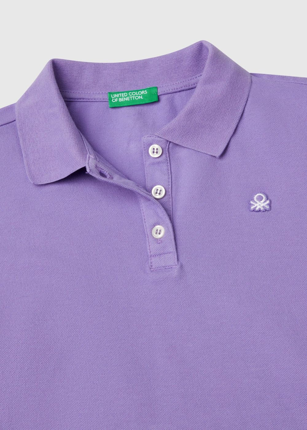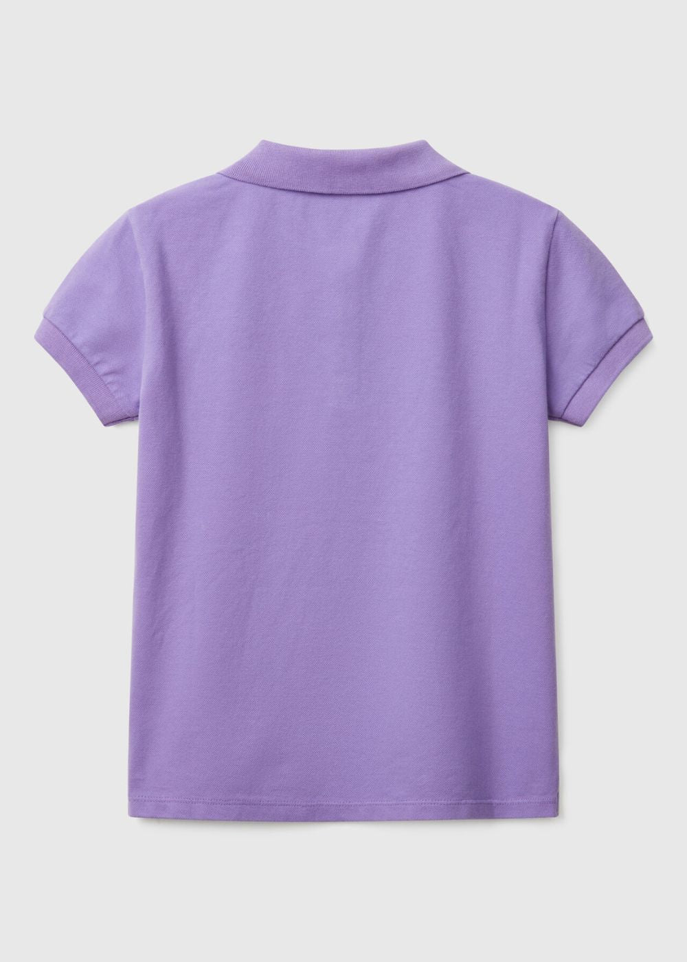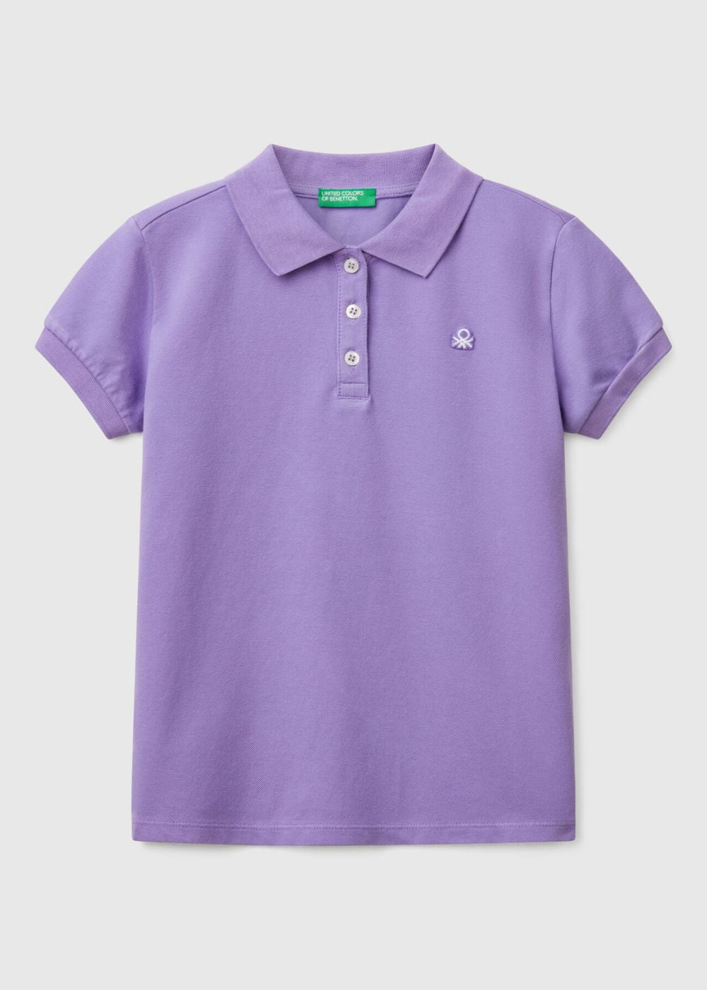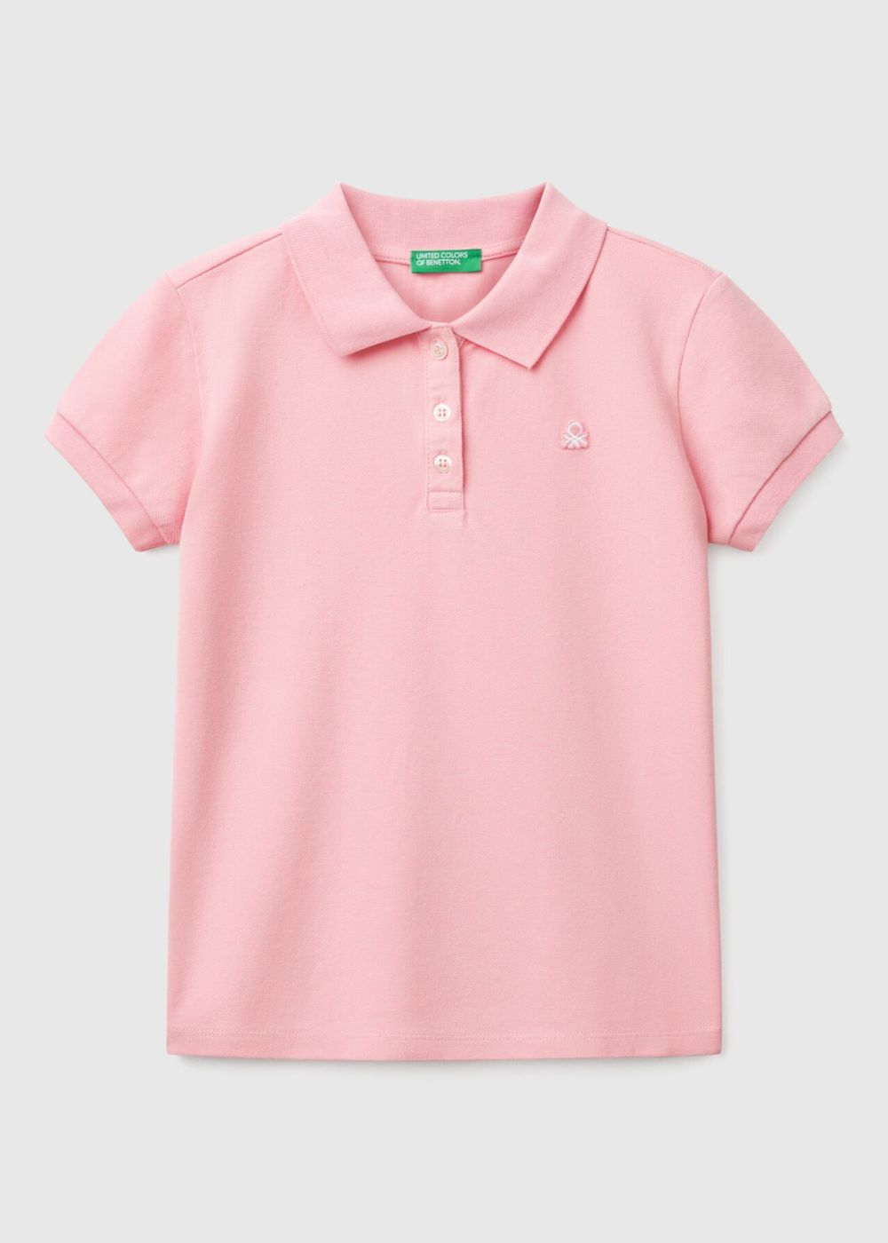 Short sleeve polo in stretch organic cotton pique. Classic cut with ribbed collar, partial opening with buttons and side slits at the bottom. Casual and womanly, with a logo patch on the left breast. Item made with material containing at least 95% organic cotton.