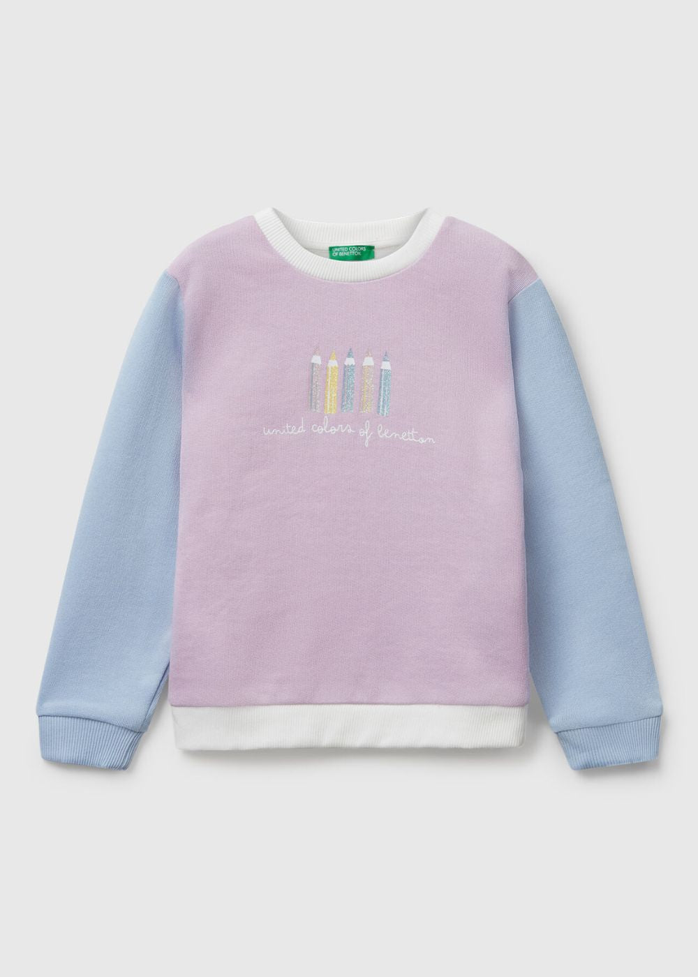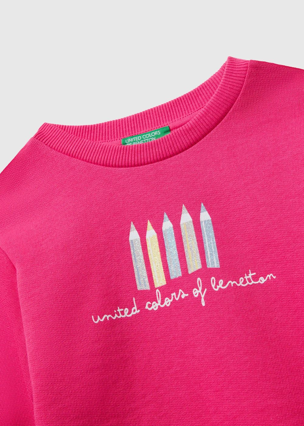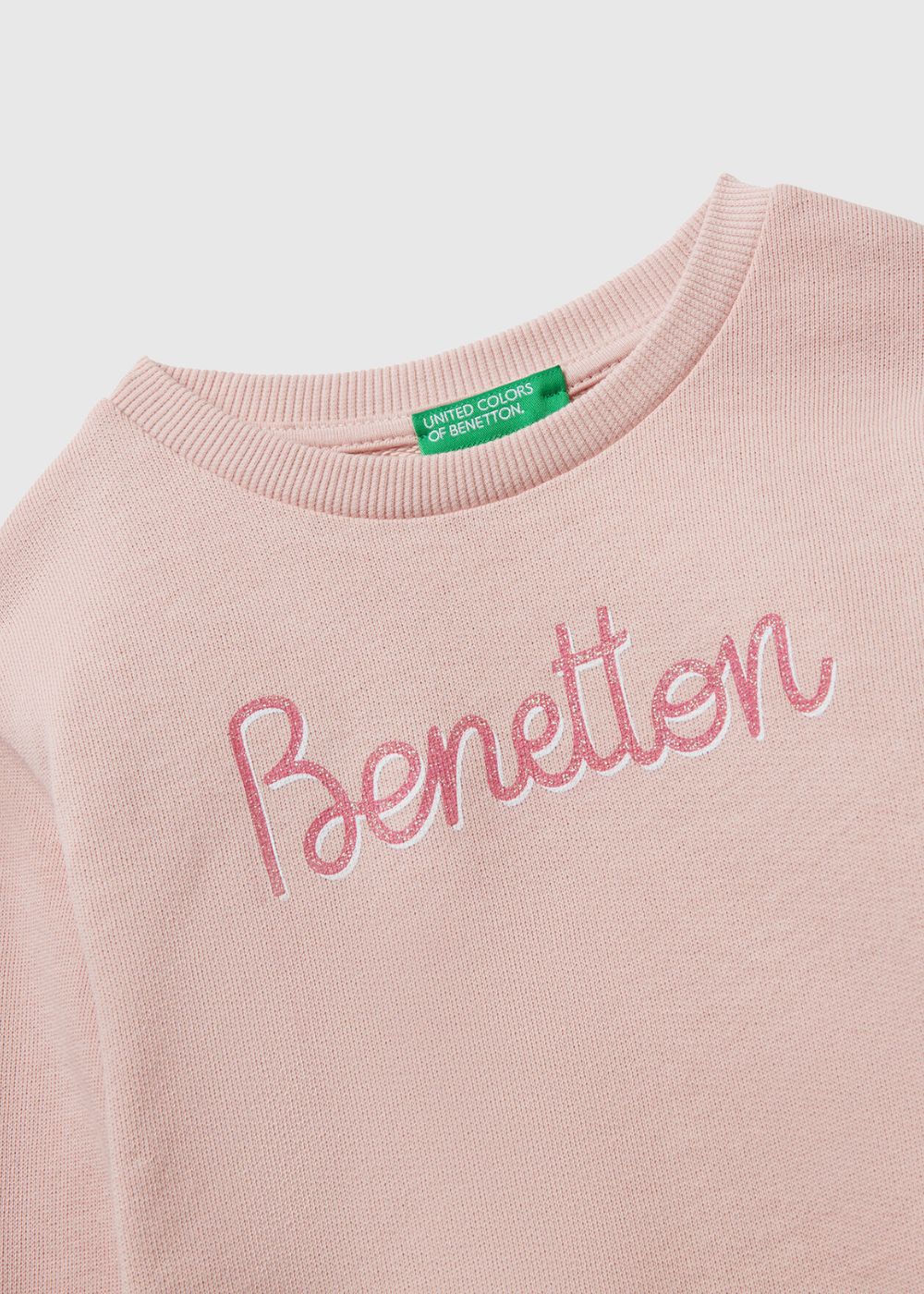 Long sleeve crew neck sweatshirt in organic cotton. Glittery logo print on the front. This garment is made from 100% OCS certified organic cotton. CERTIFIED BY ICEA - ICEA - TX - 611. Products certified according to the Organic Content Standard (OCS) contain independently verified organic content at every stage of the supply chain, from the recycling to the finished product.