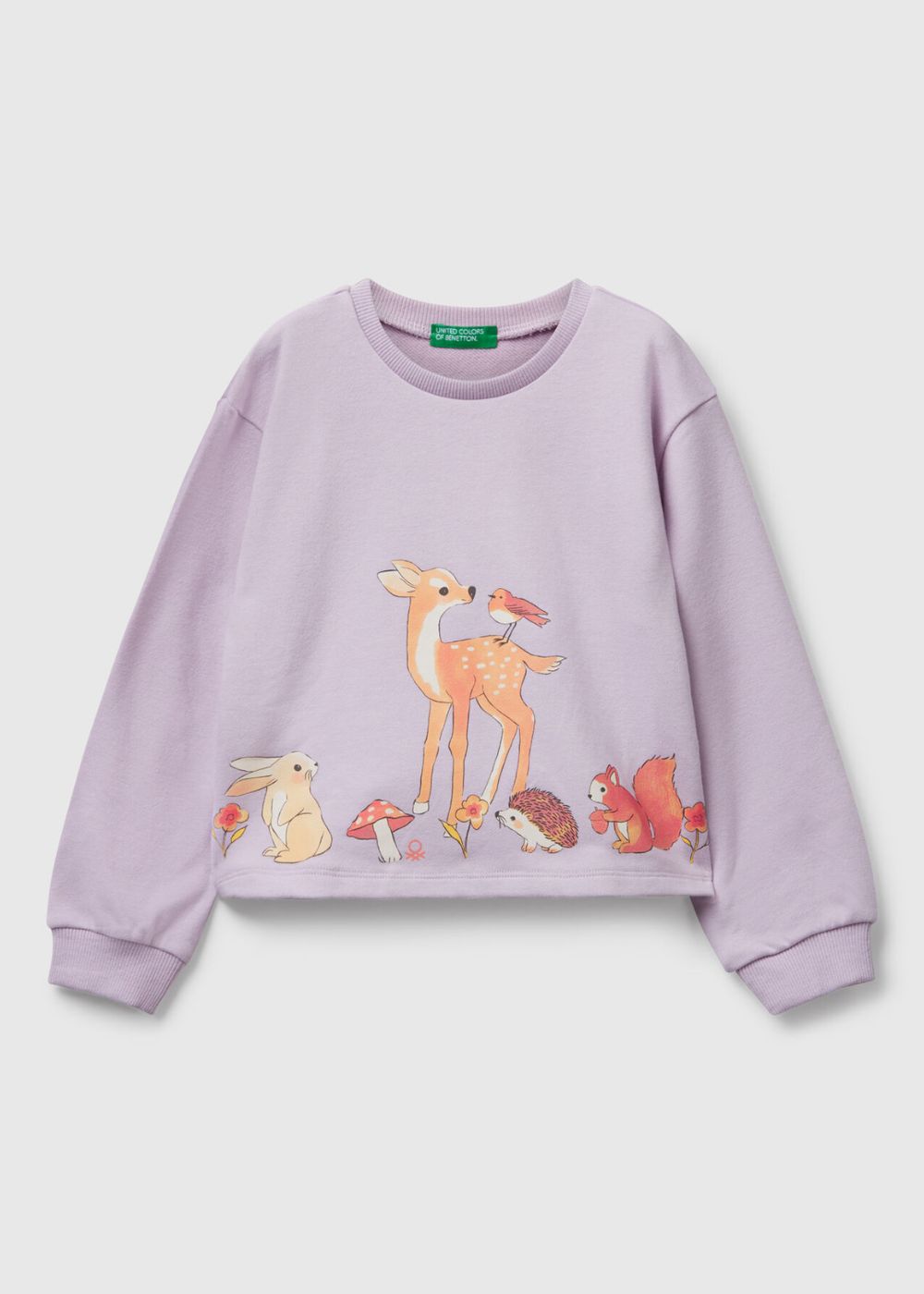 Crew neck sweatshirt with long sleeves in soft cotton blend. Cute animal print on the front, to say goodbye to boredom.