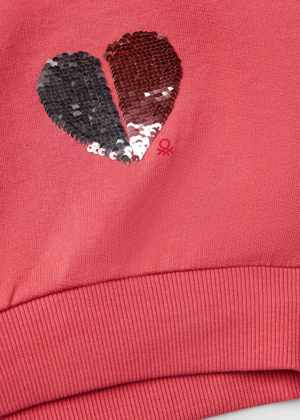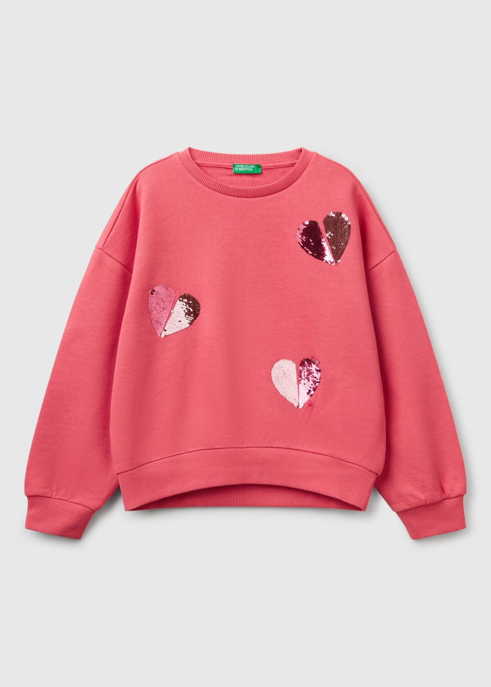 Crew neck long sleeve sweatshirt in pure cotton with consistent yet light feel. Dropped shoulders, regular fit, sequined print and graphics on the front. Comfy and sparkling, for a trendy look.