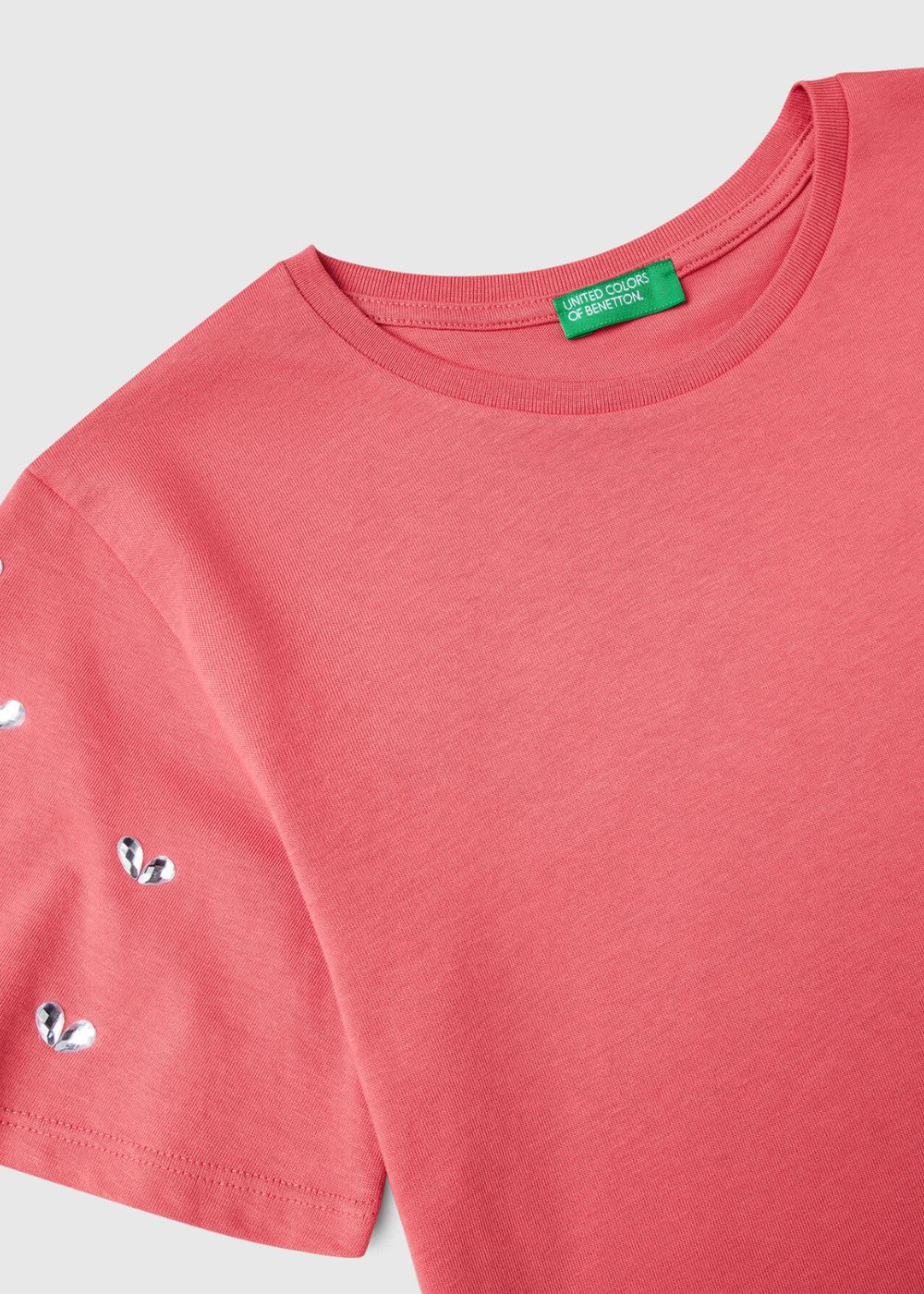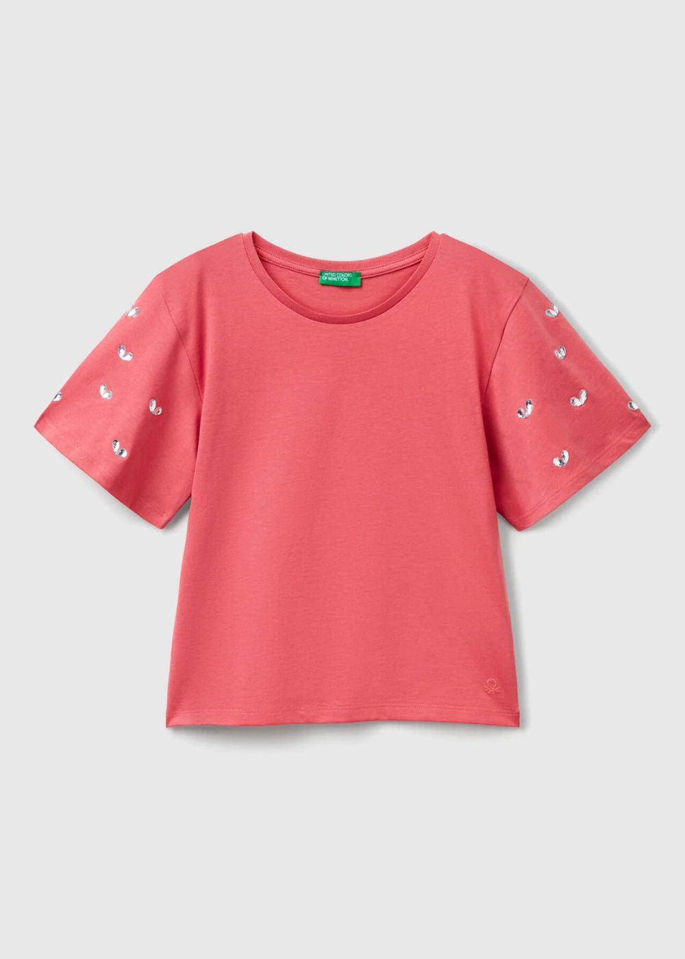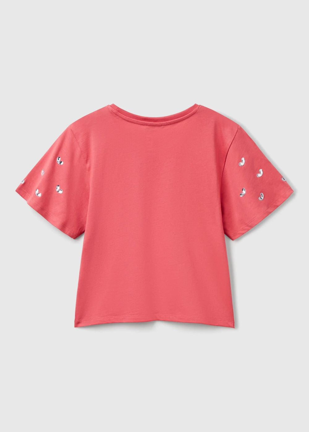 Organic cotton crew-neck t-shirt. Short sleeves with heart-shaped rhinestones, logo embroidered on the left bottom. This garment is made from 100% OCS certified organic cotton. Certified by ICEA - ICEA - TX - 611. Products certified according to the Organic Content Standard (OCS) contain organic content that has been independently verified at every stage of the supply chain, from the recycler to the finished product.