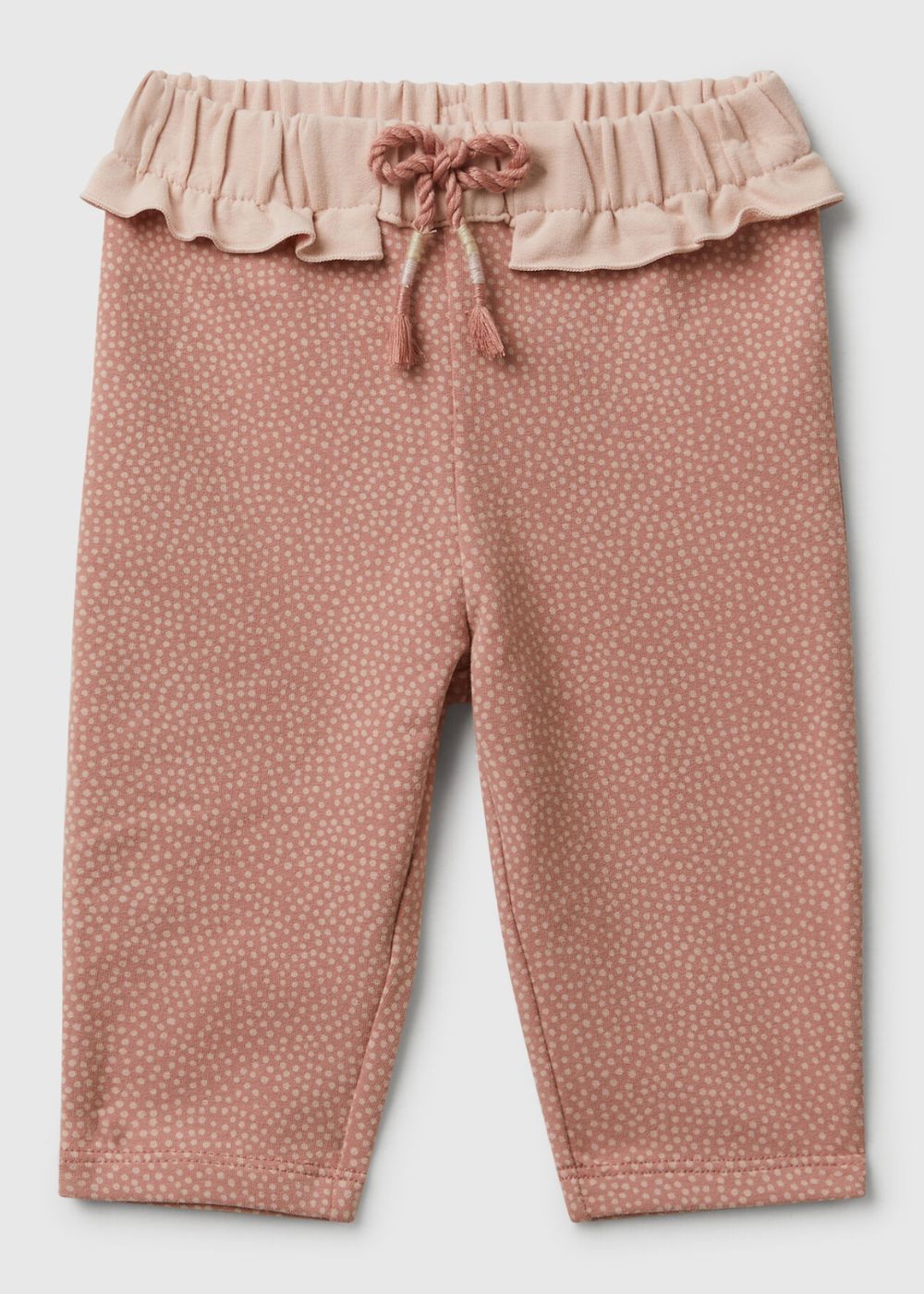 Long trousers in soft sweat fabric with allover polka dot print. Stretch waist with rouches and decorative rope drawstring. This garment is made with at least 95% OCS certified organic cotton. Certified by ICEA. - ICEA - TX - 611. Products certified according to the Organic Content Standard (OCS) contain independently verified organic content at every stage of the supply chain, from the recycling to the finished product.