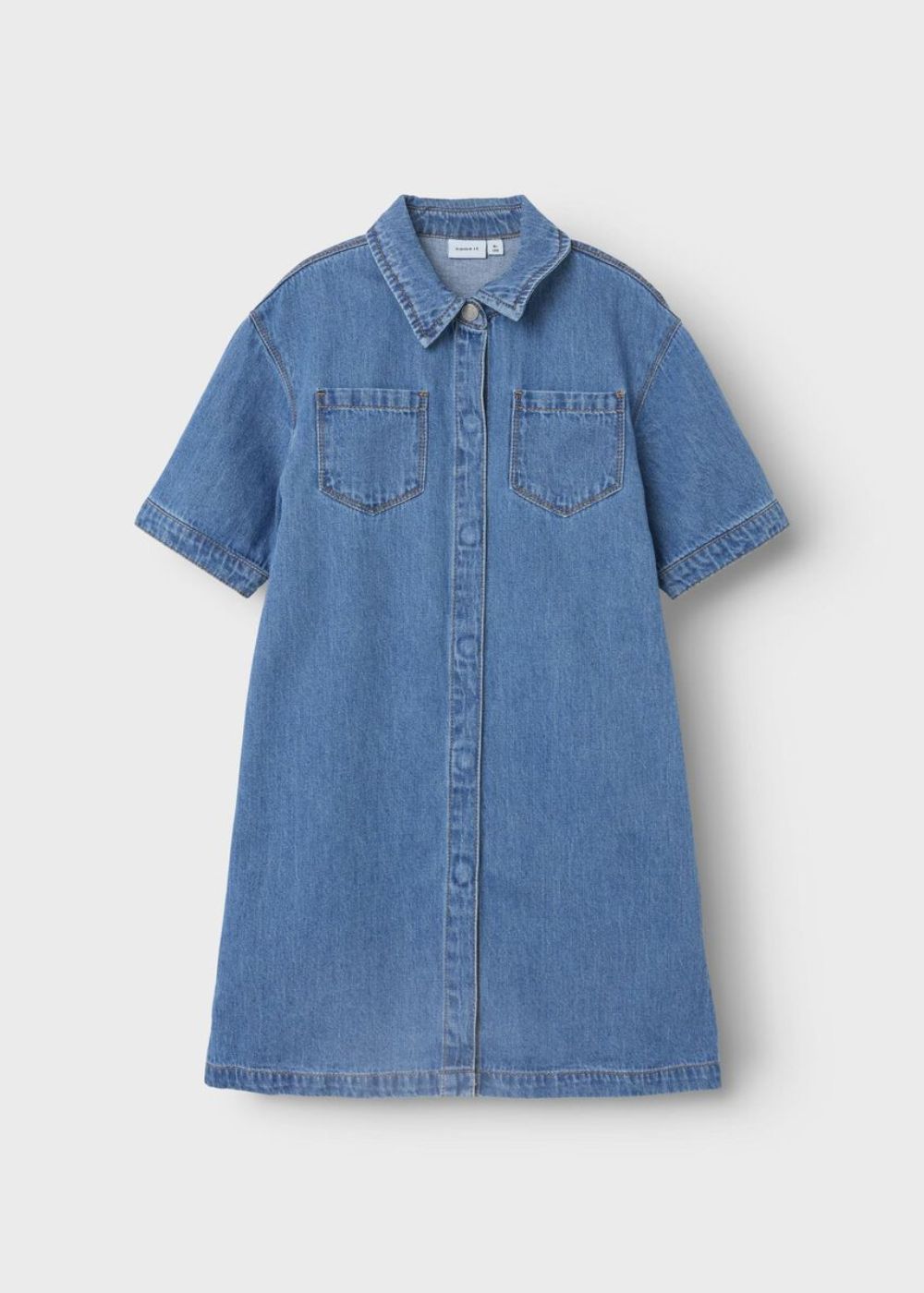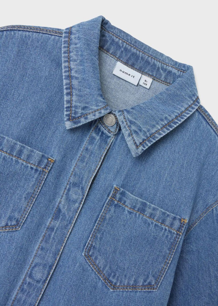Elevate your child’s wardrobe with this sophisticated denim dress, designed for versatility across seasons and occasions. Crafted from durable woven denim, it features a classic shirt collar, long sleeves, and practical chest pockets. The press stud fastening ensures easy wear, while subtle stitching details add refined character. This dress combines timeless style with functional design, making it an elegant choice for everyday wear or special moments.