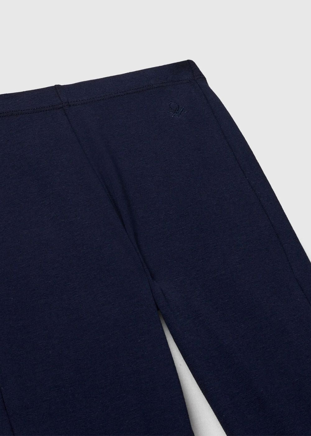 Long leggings in stretch cotton with a soft texture. Tone-on-tone embroidered logo at left side, flared cut with tapered leg at hip and flared at bottom, regular waist with inner elastic. Ideal for school or for free time.