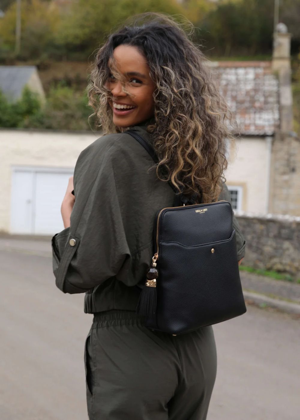 Bridget is a casual backpack designed for style and functionality. The Weekend Edit range introduces Bridget - a cute, casual and chic backpack for journeys near and far. Bridget is functional featuring a handy front slip-in pocket and also features our signature Thames Tassel charm for added interest. She has a roomy internal compartment for a tablet and an external pocket for easy access - perfect for phones or a wallet. Bridget is a great companion for any trip to work, a day trip or just for a coffee.