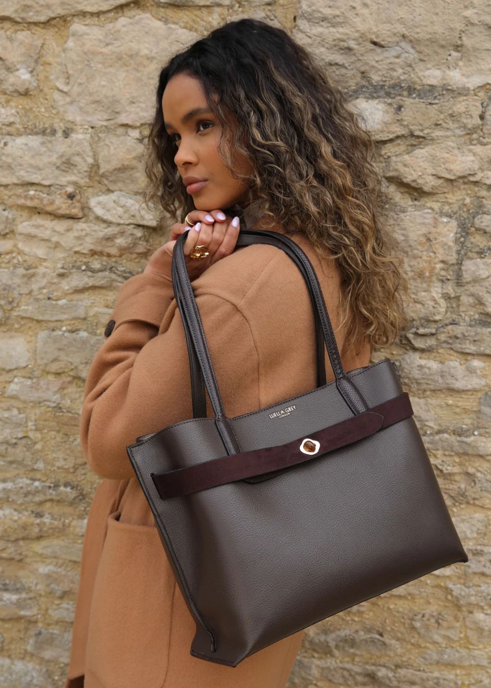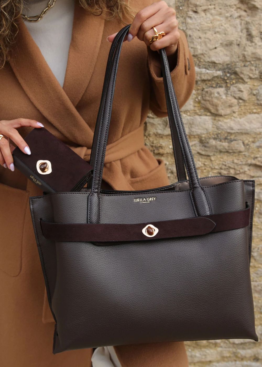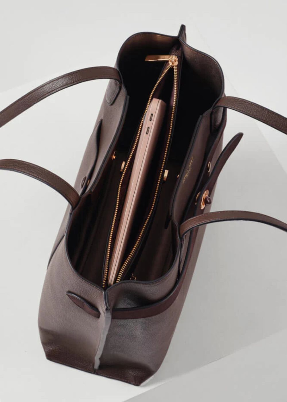 Oriana is a laptop tote designed for style and functionality. Inside the laptop compartment you will find a soft padded lining to keep your laptop protected, fitting a laptop that measures 30.5cm, width 23cm, depth 1cm. Oriana has an exterior pocket, two internal pockets and comes complete with a protective dustbag. Trimmed in a feature reptile print material and our signature metallic lining, Oriana combines the perfect balance of beauty and practicality.
