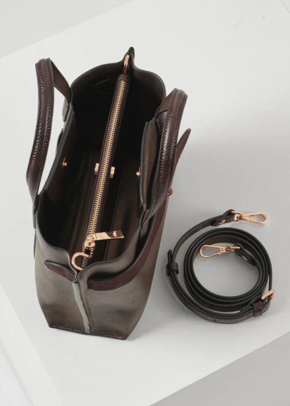 Oriel is a crossbody designed for style and functionality. Introducing the mini-me version of our best-selling Oriana Tote - style Oriel. As sophisticated and beautiful as her bigger sister, this cute tote has all the detailing and carefully considered functionality of Oriana. Featuring an inner zip pocket for securing your valuables, large pockets either side for wallets and makeup and a back pocket for easy access. Oriel may be small but she is surprisingly roomy - choose to drape her on your arm, hold her in your hand with the grab handles or simply carry her across your body when you want to be hands-free. Oriel comes complete with a protective branded dustbag.