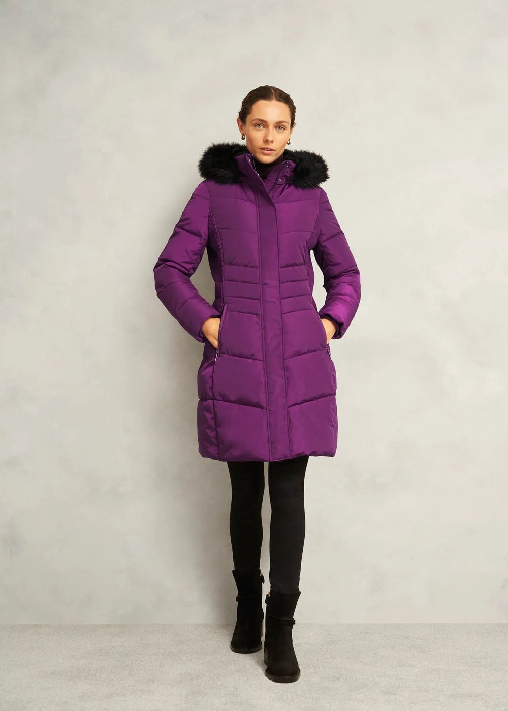 - Removable faux fur hood