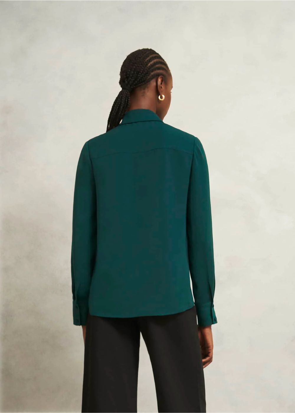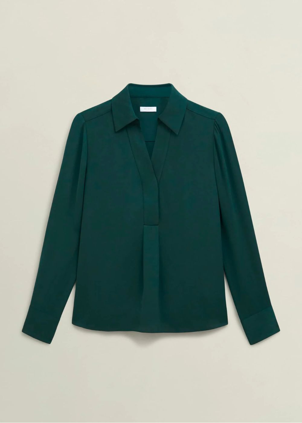 Styled under a suit or with jeans, the Marie blouse marries jewel tones with a desirable drape for midweek chic.