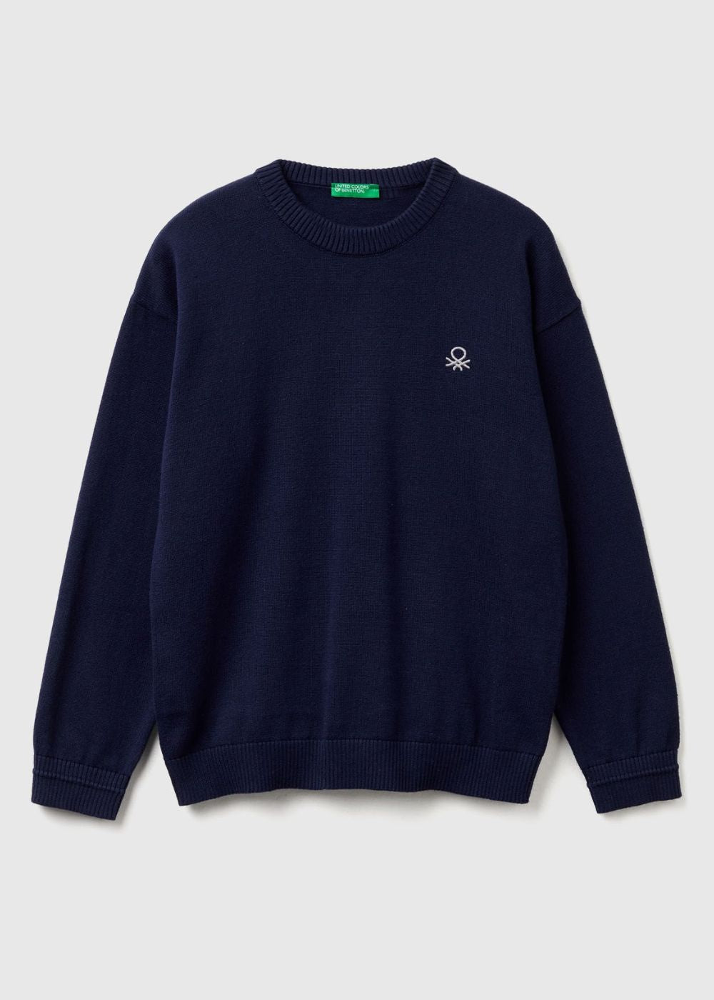 Long sleeve round neck sweater made of pure cotton. Logo embroidery at left breast and ribbed edges. An "Easy Care" piece that can be machine-washed. This garment is made from 100% OCS certified organic cotton. CERTIFIED BY ICEA - ICEA - TX - 611. Products certified according to the Organic Content Standard (OCS) contain independently verified organic content at every stage of the supply chain, from the recycling to the finished product.
