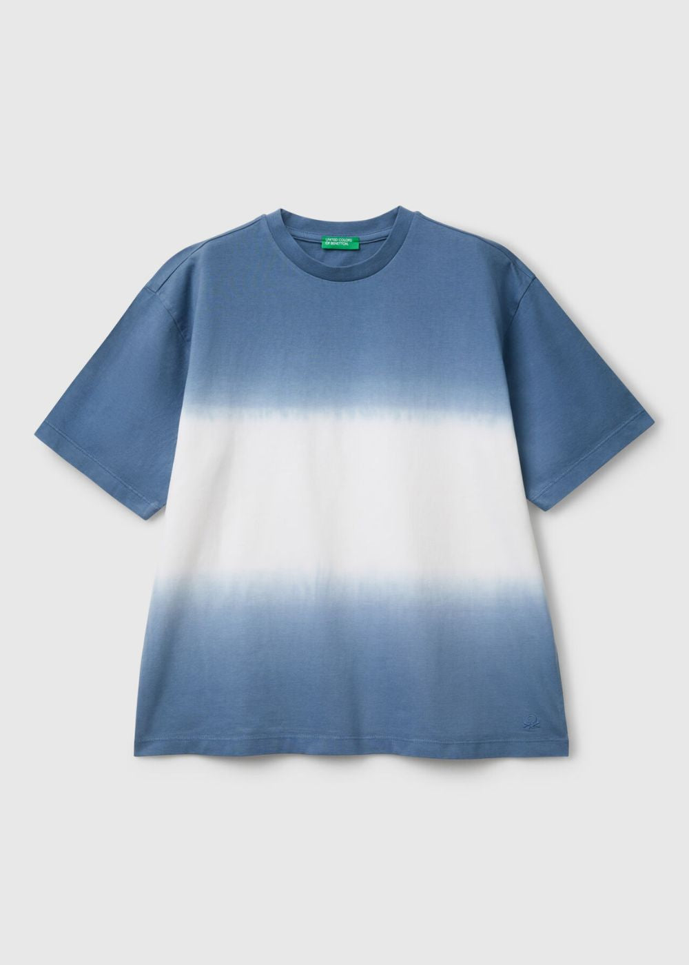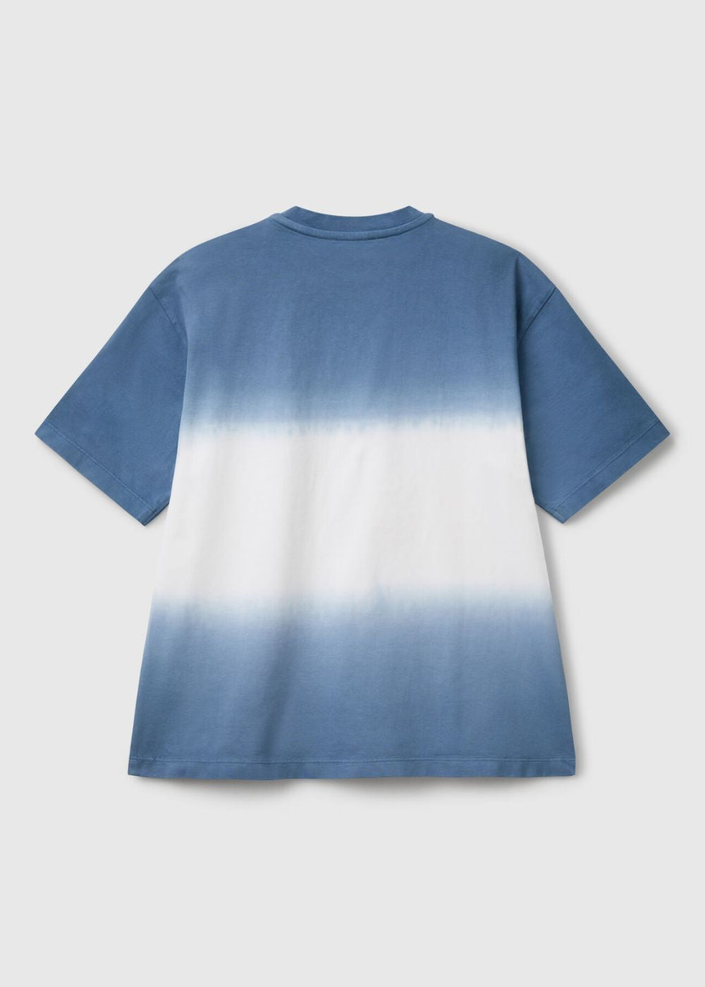 Crew neck, short sleeve t-shirt in soft pure cotton fabric. Loose fit and clashing embroidered logo on the bottom. Faded look obtained through a particular dyeing process that makes each garment unique.