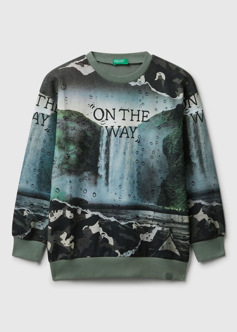 Long sleeve crew neck sweatshirt in soft pure cotton fabric. Maxi print on front and on sleeve. Ideal for free time.