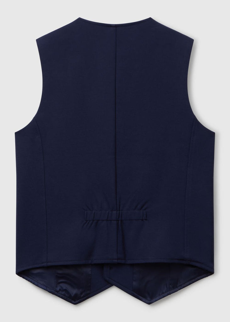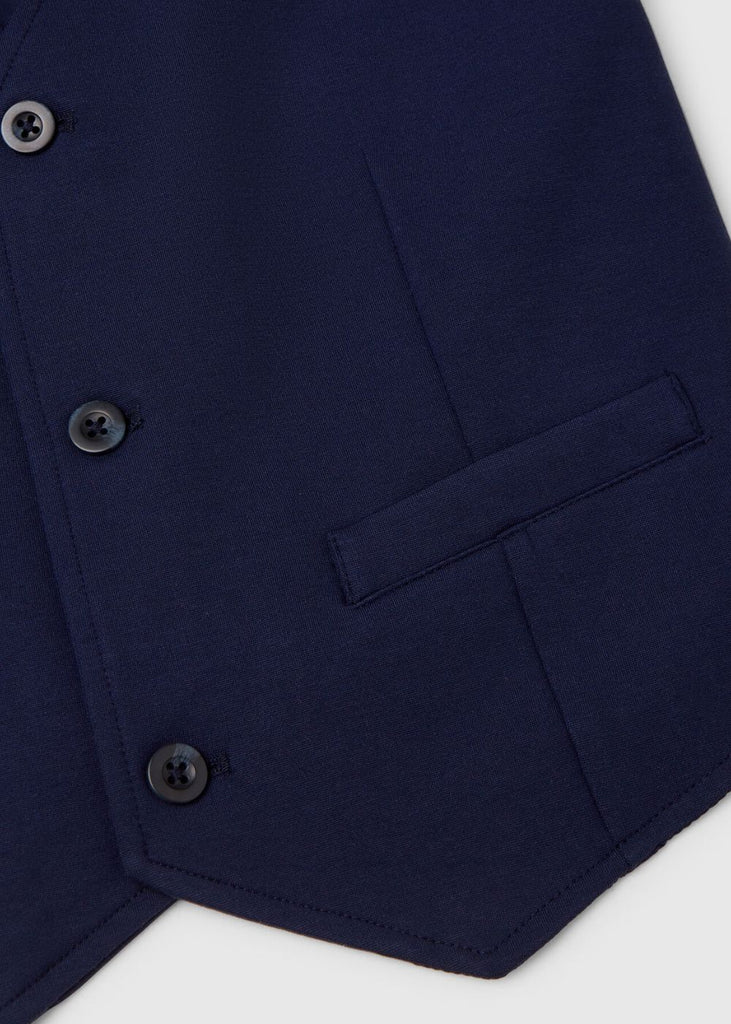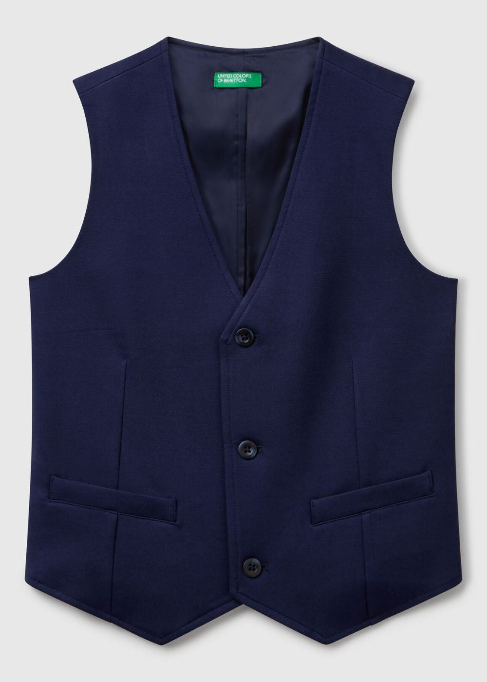 Classic cut lined vest with V-neck and three-button opening. Welt pockets and darts on the front. A garment for more formal events, to be worn with a shirt.