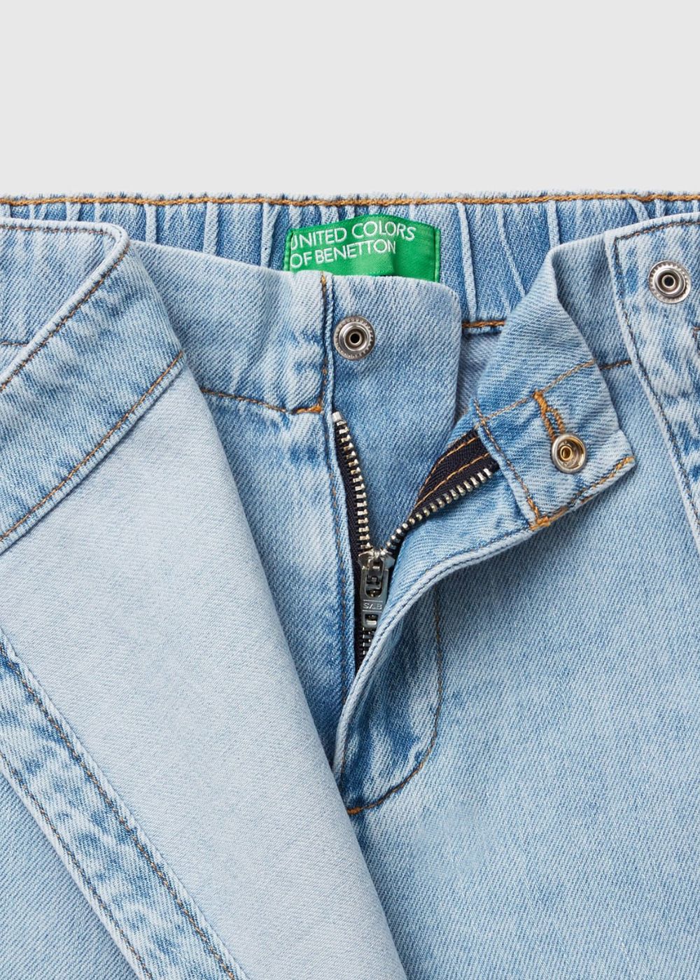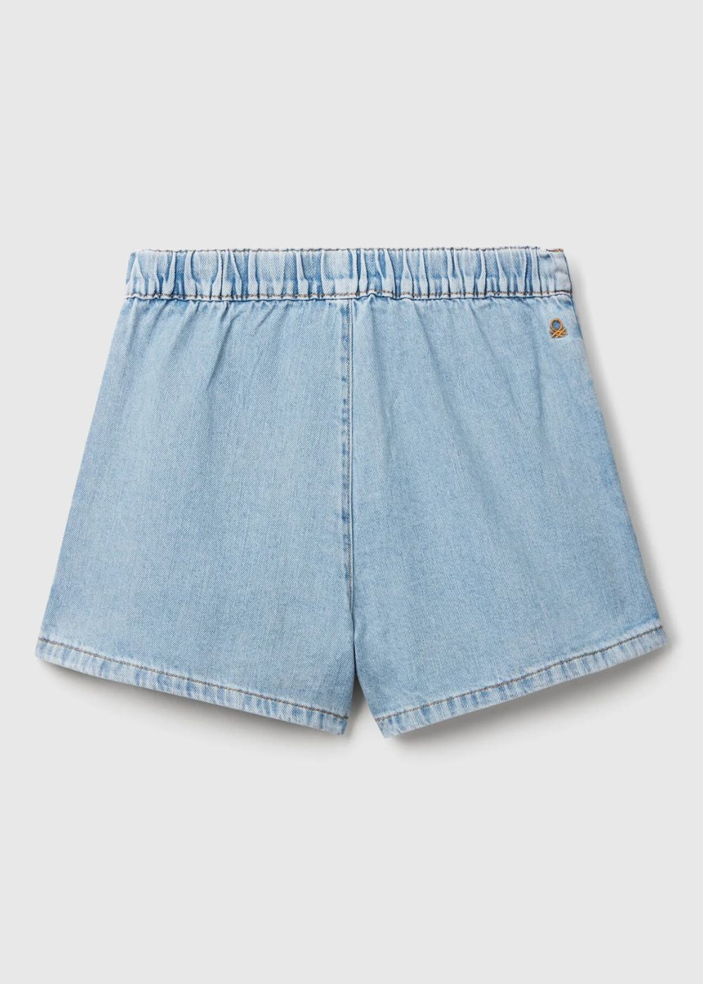 Culottes in lightweight pure cotton denim. Front panel with wrap closure with buttons, elastic waist at the back and hidden opening with press stud. For cool, modern outfits.