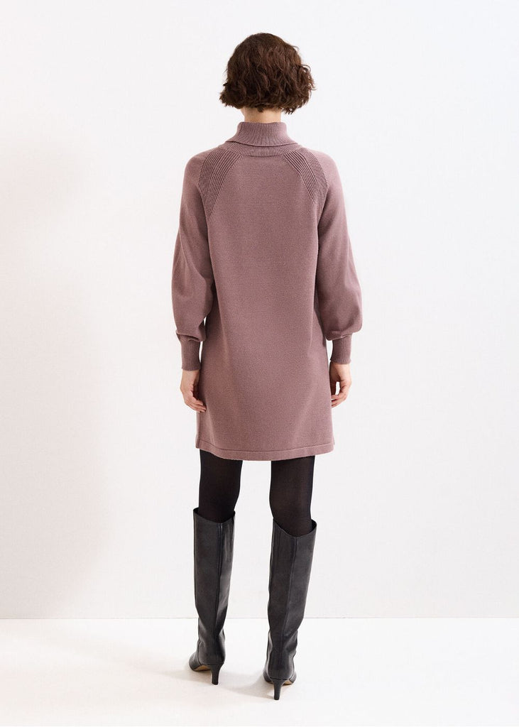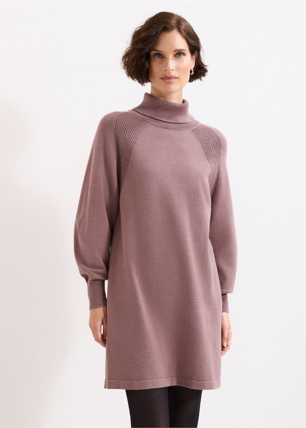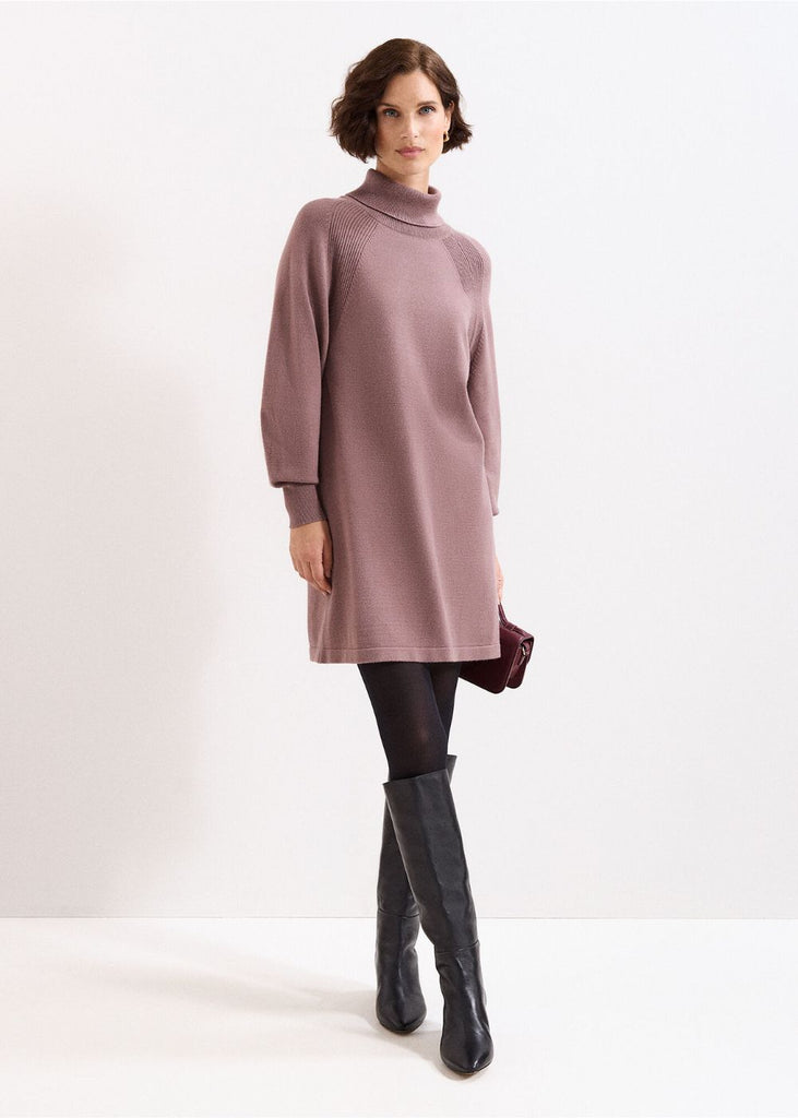 Every wardrobe needs a knitted jumper dress. In a new trending mocha mousse shade that will work throughout the seasons ours features a soft roll and blouson sleeves for a refined look. The mini length makes it perfect for pairing with your favourite boots and tights.