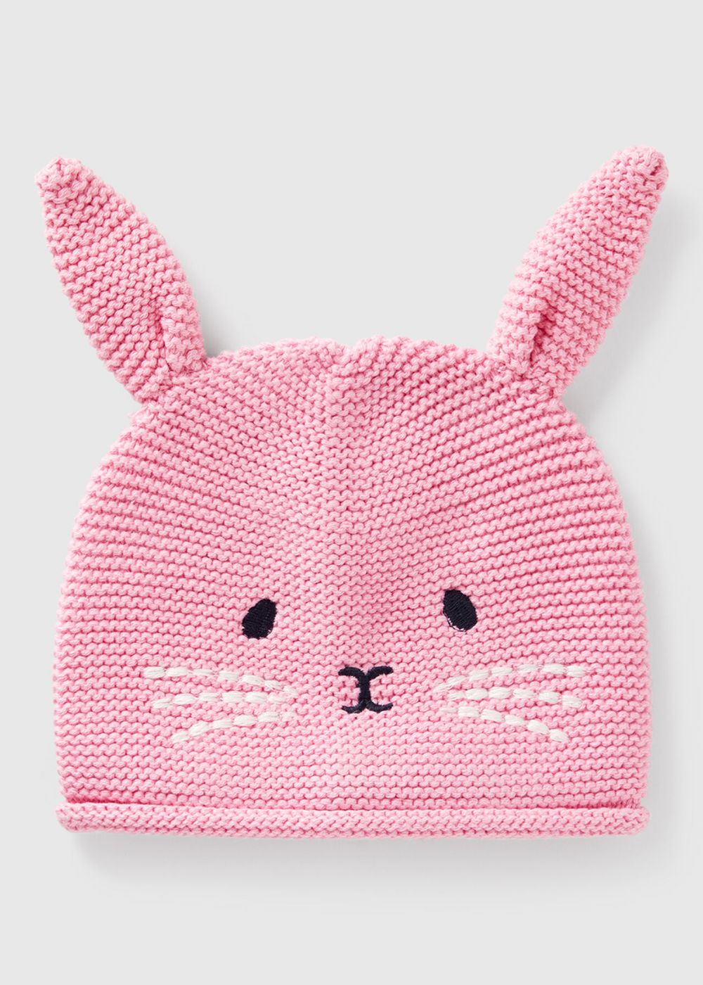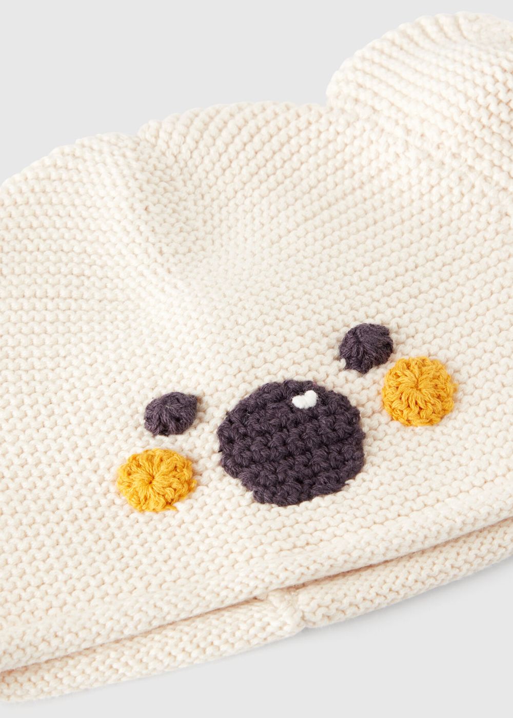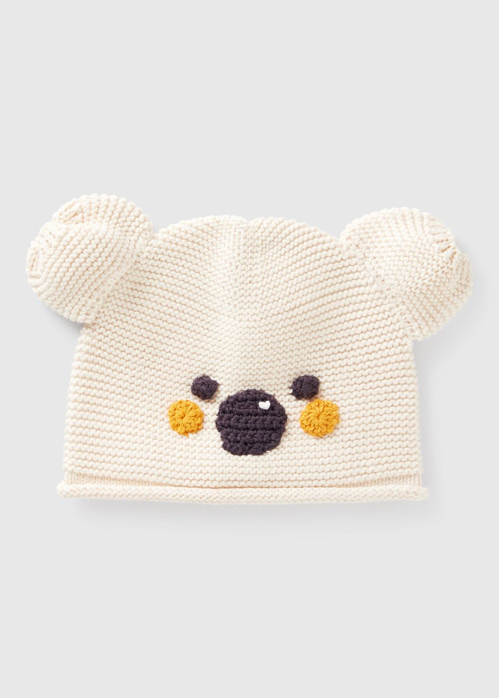 Hat in pure cotton tricot with fun crochet appliques. Animal face embroidered by hand on the front and ears on the top. Cute, refined and warm.
