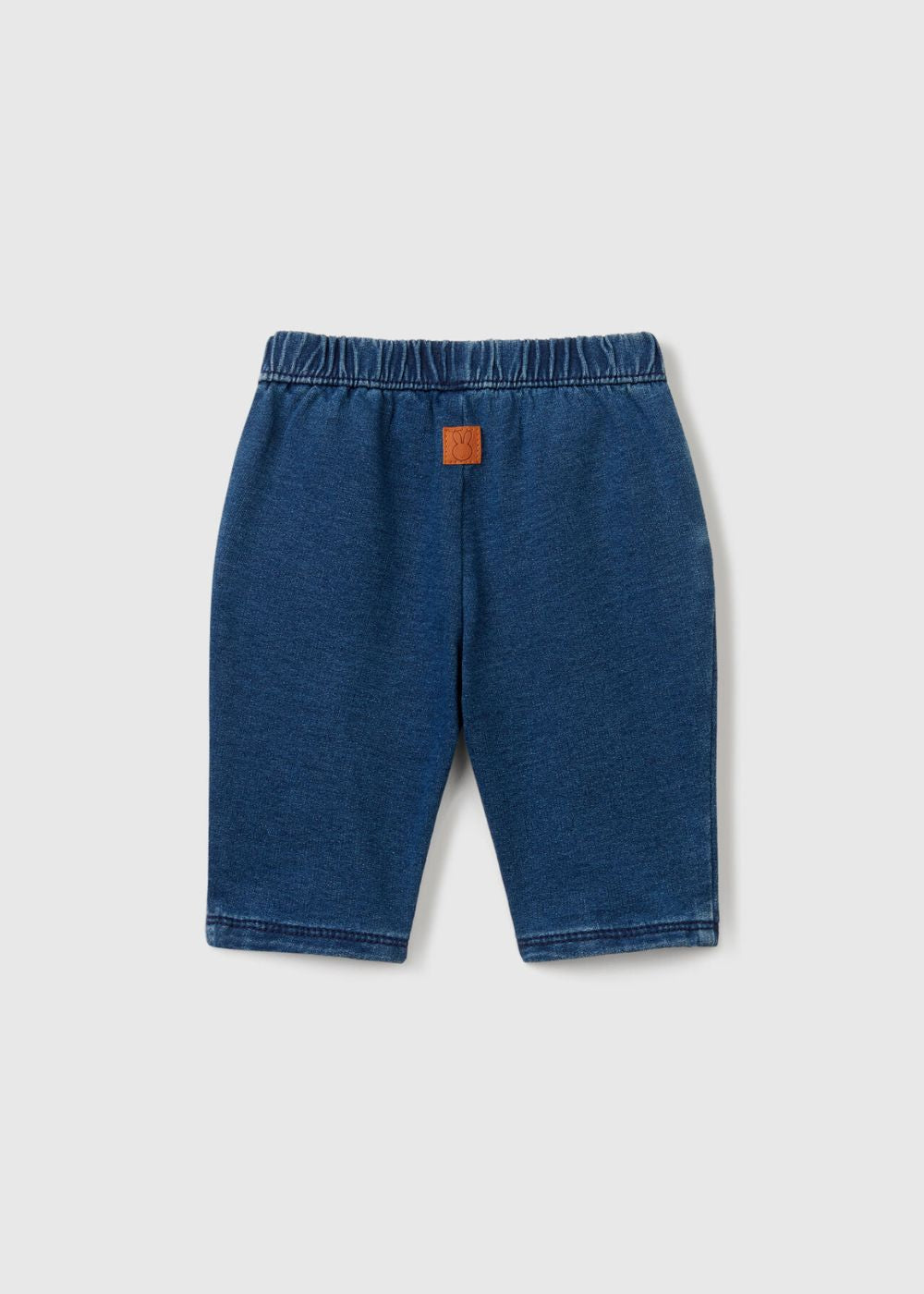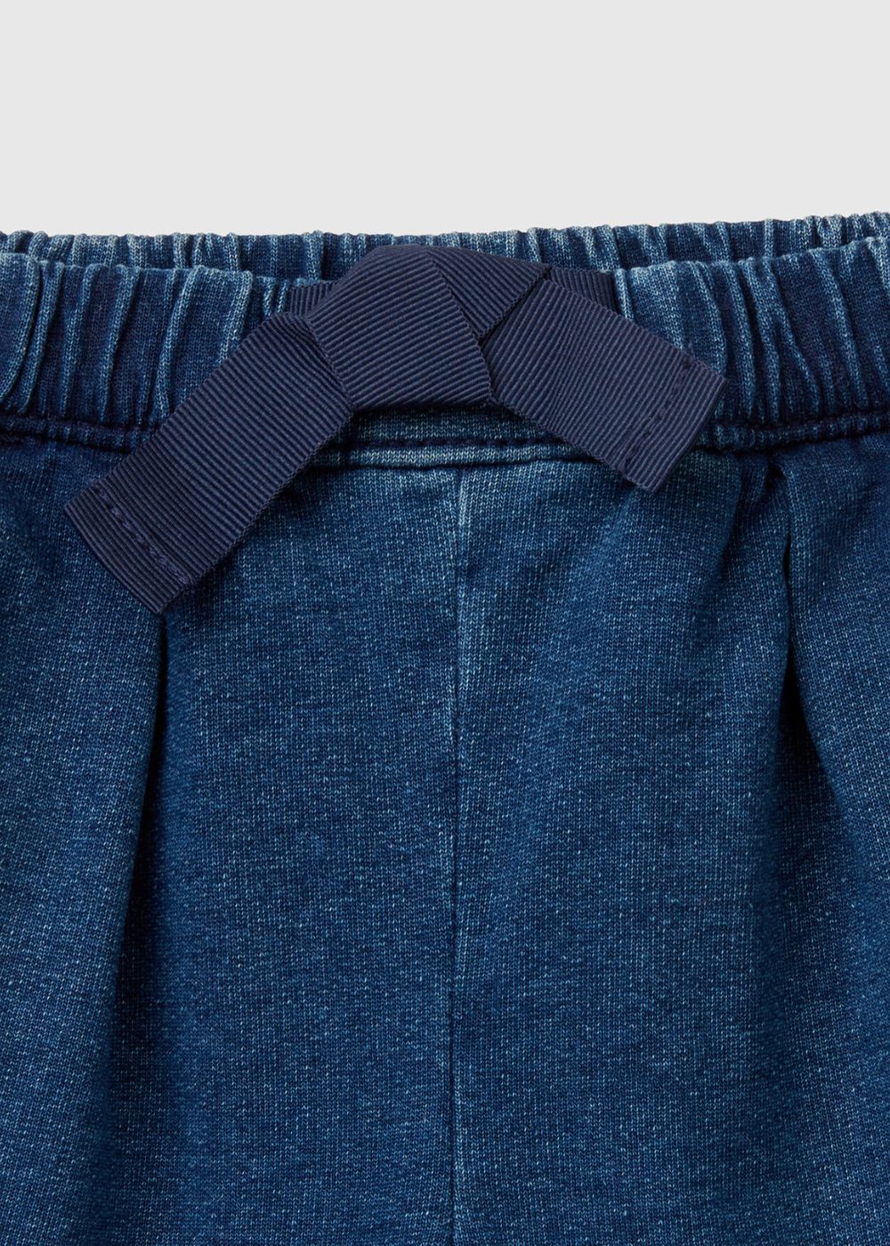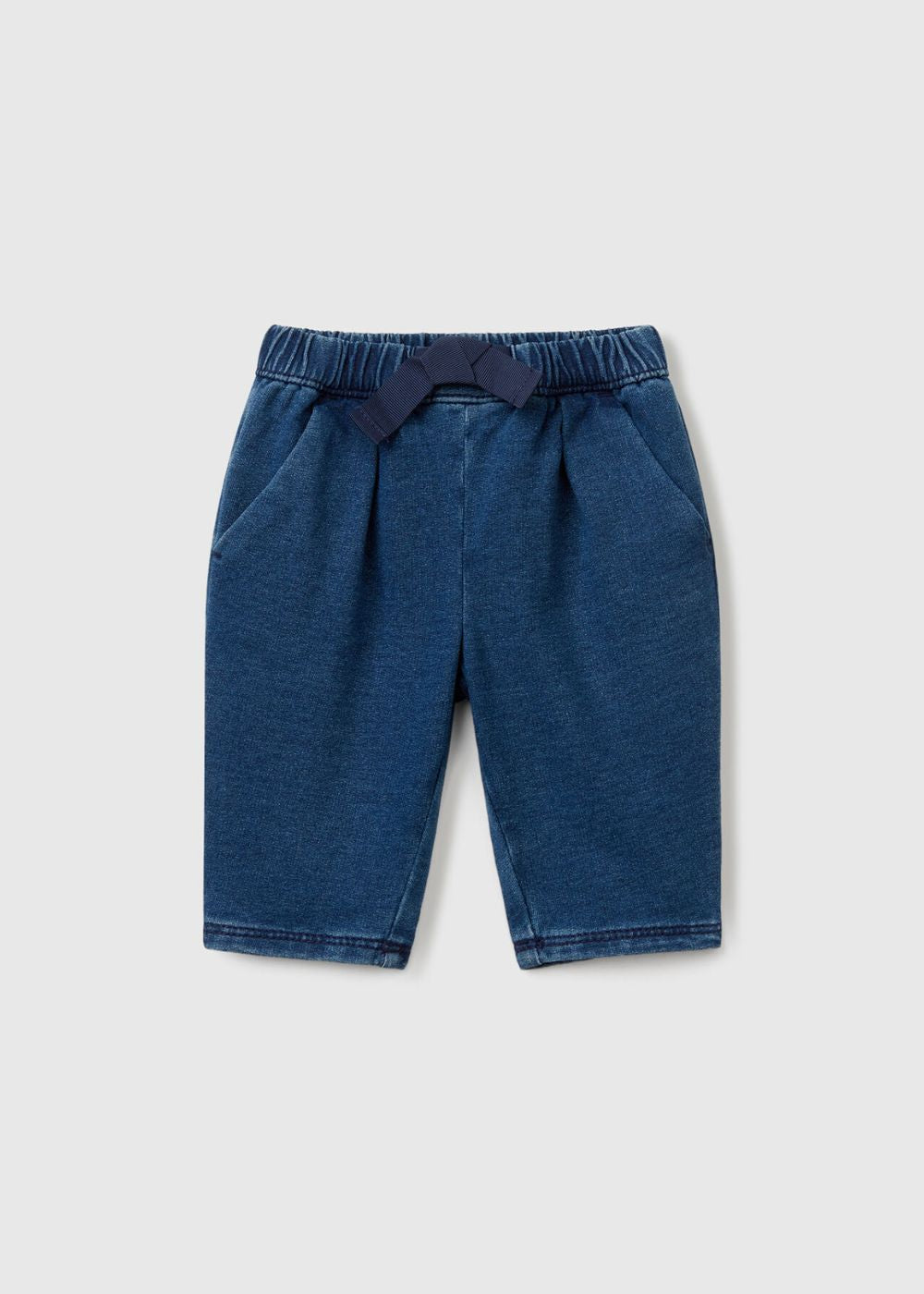 Long trousers in soft denim-look stretch cotton blend sweat. Waist with fabric drawstring, front pockets. For a casual and modern style, baby version.