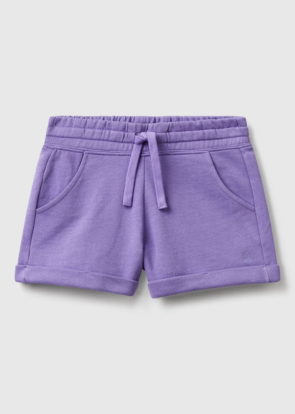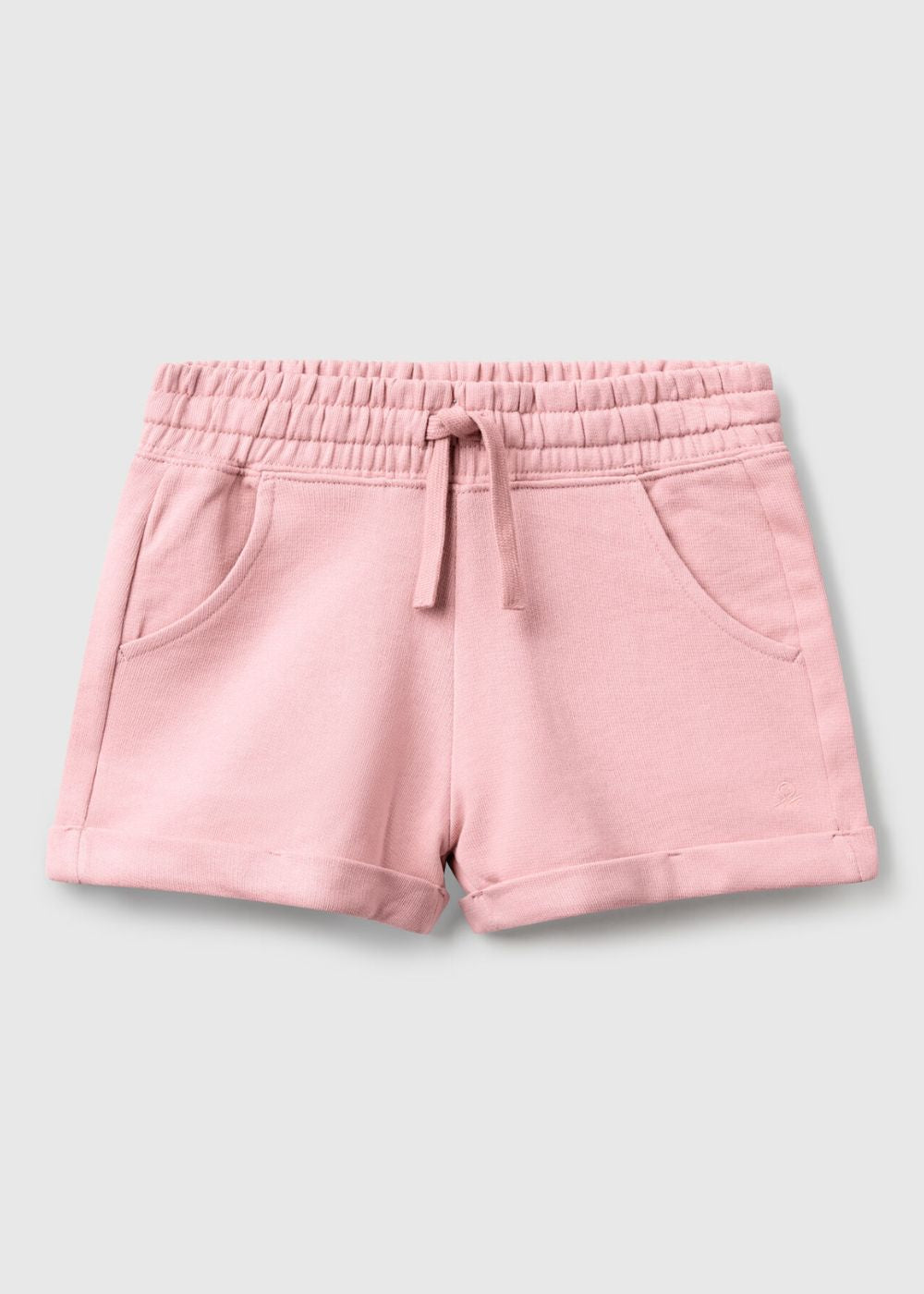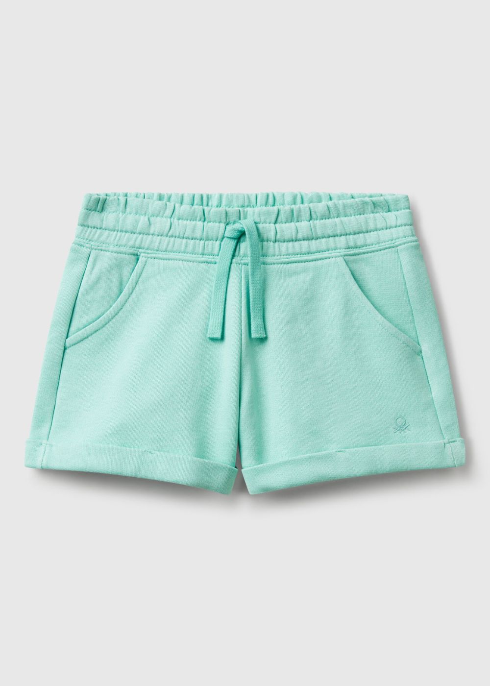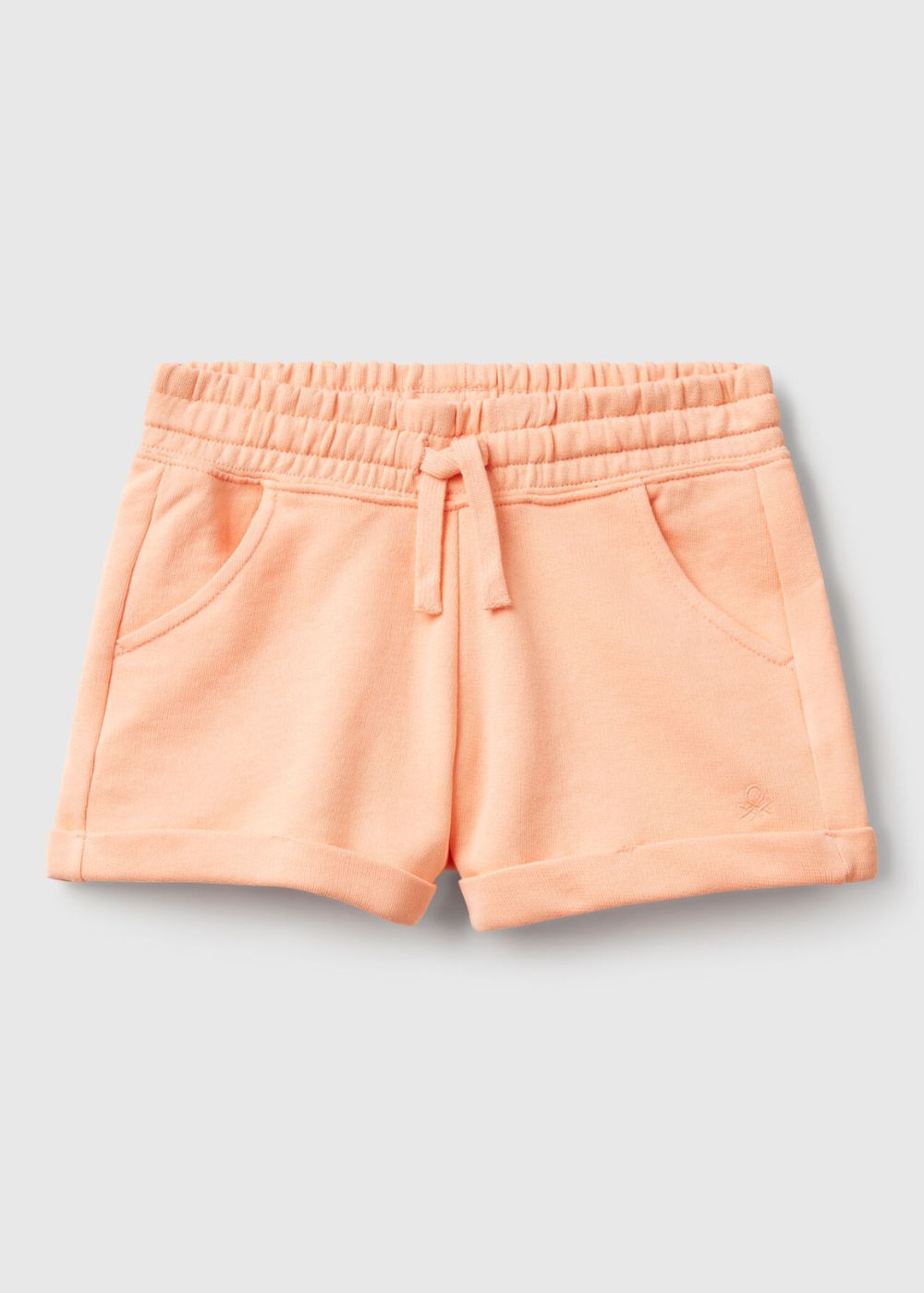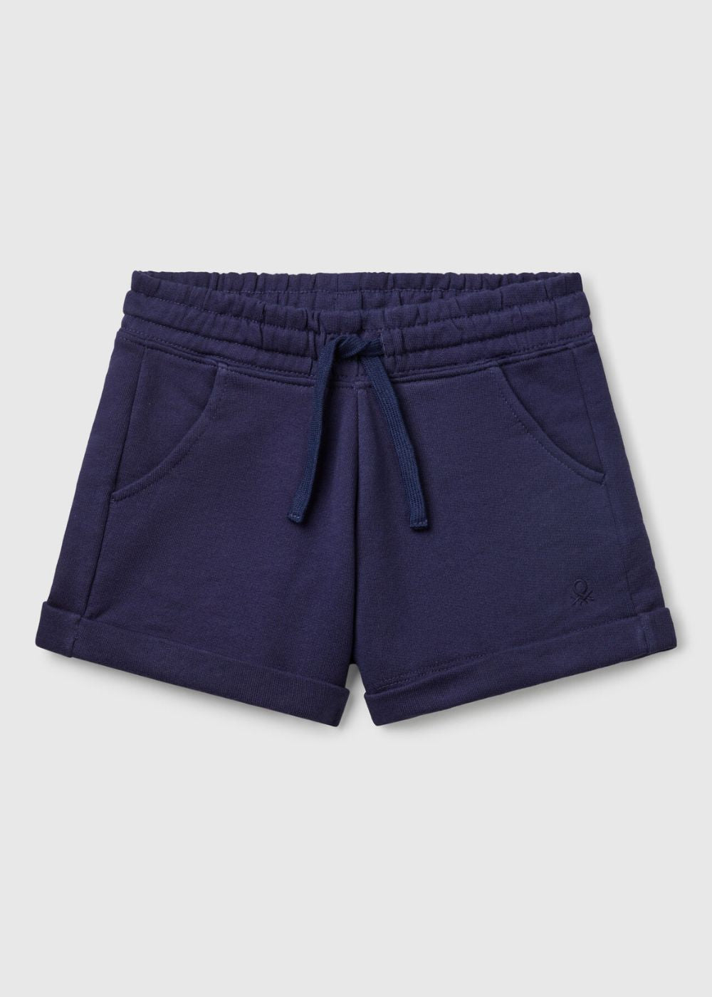 Short shorts in pure cotton fleece with a firm but light feel. Equipped with a comfortable elastic waist and drawstring, logo embroidered on the front. Updated and contemporary cut thanks to the turn-up at the bottom of the leg.