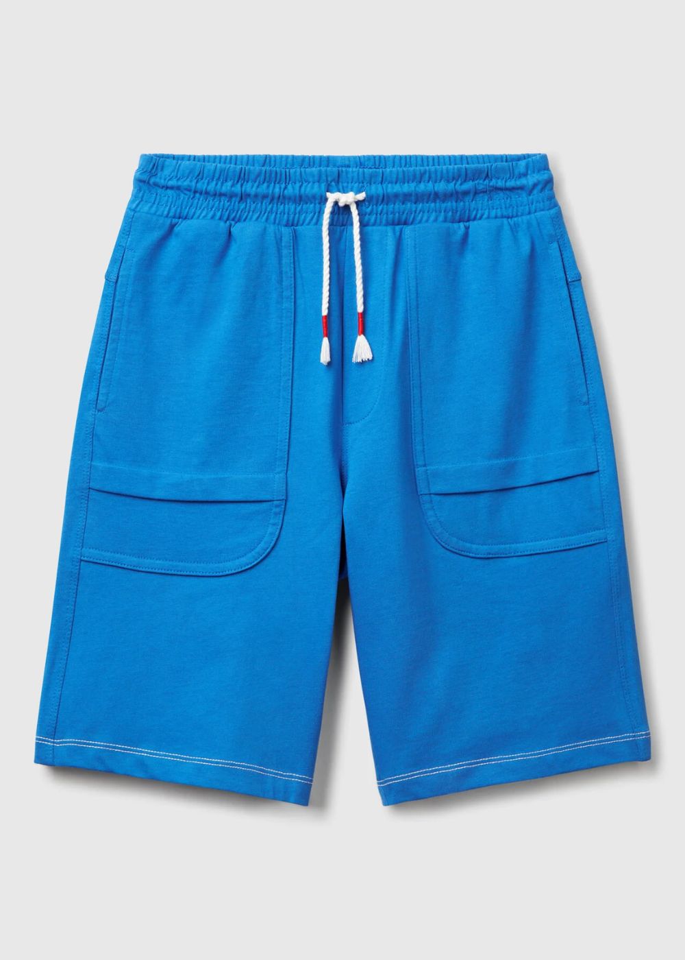 Shorts in pure cotton with consistent feel. Relaxed fit that hits below the knee. Stretch waist with rope drawstring, front pockets and patch pocket on the back. Clashing stitching features, to add an original touch to everyday looks.