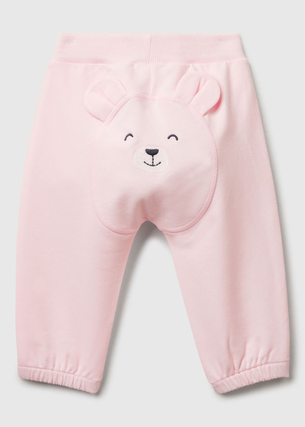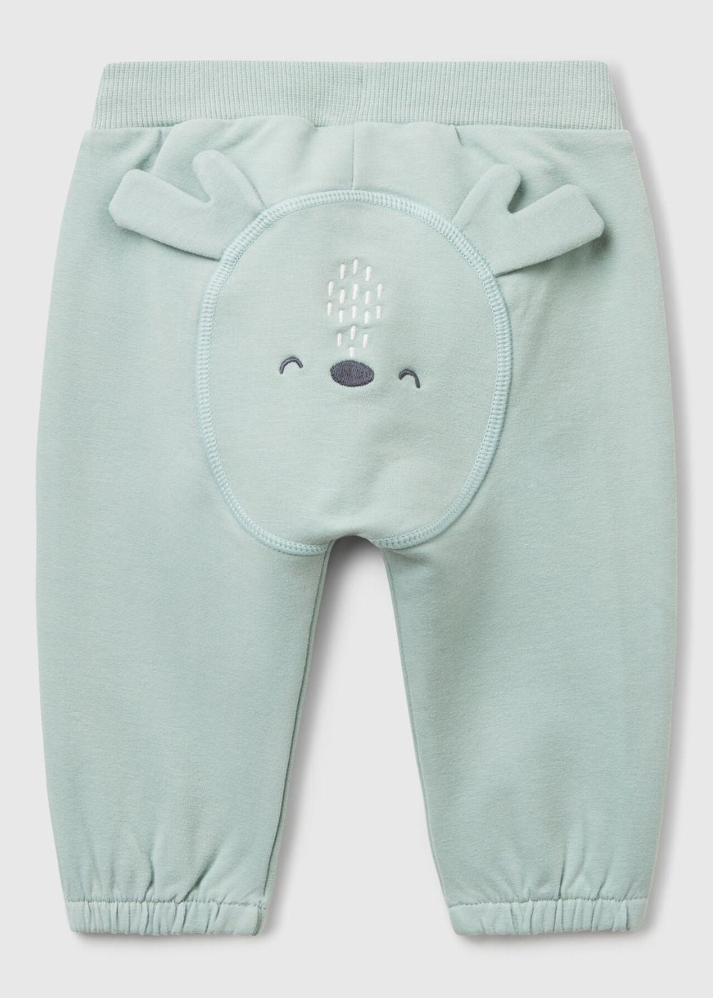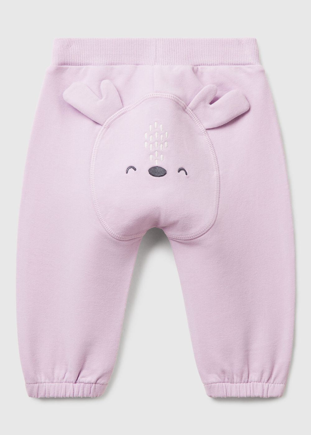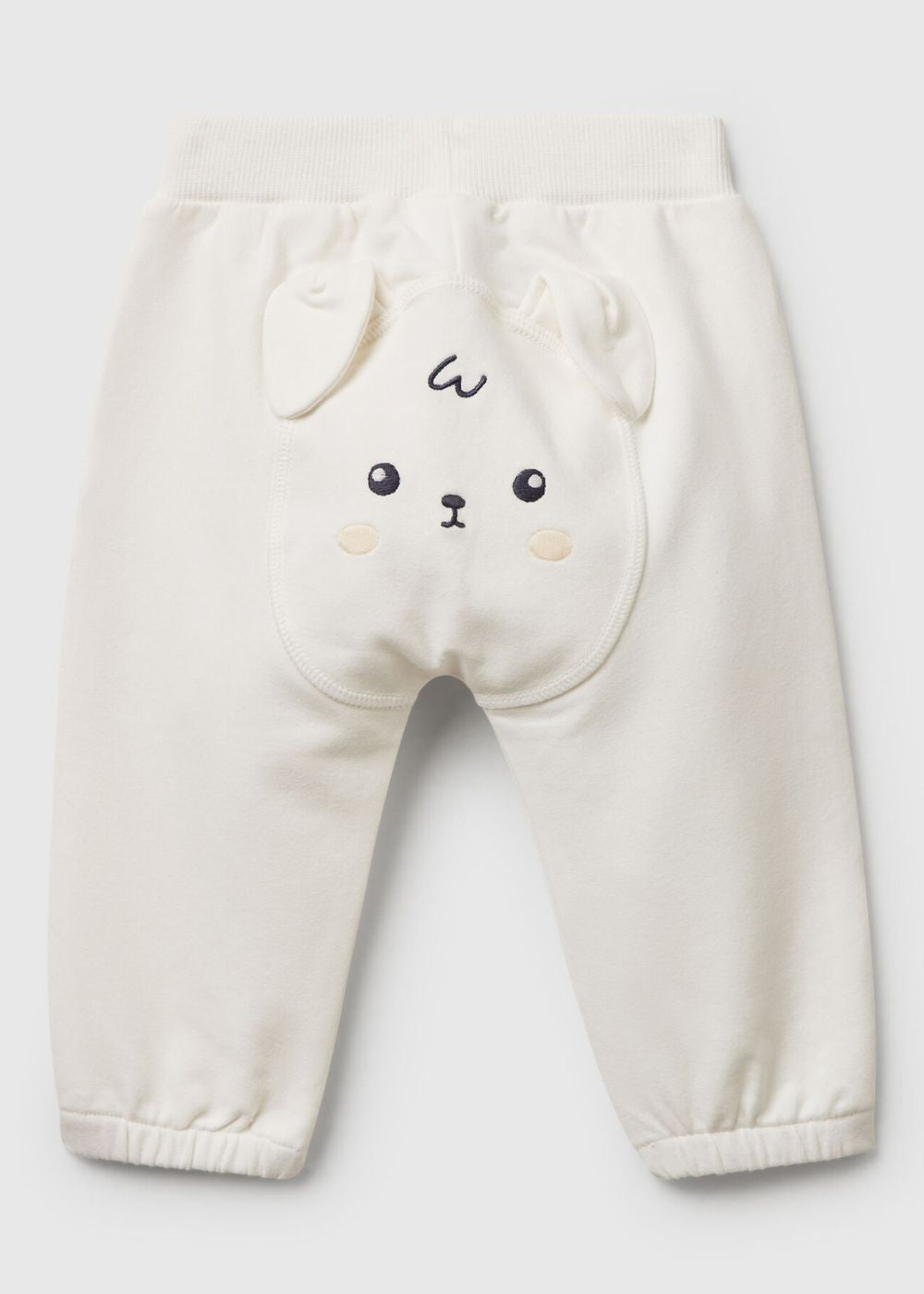 Long sweatpants in organic stretch cotton. Elastic at waist and leg bottom. A soft and fun piece, with an animal face embroidered on the back and applique ears. This garment is made with at least 95% OCS certified organic cotton. Certified by ICEA. - ICEA - TX - 611. Products certified according to the Organic Content Standard (OCS) contain independently verified organic content at every stage of the supply chain, from the recycling to the finished product.