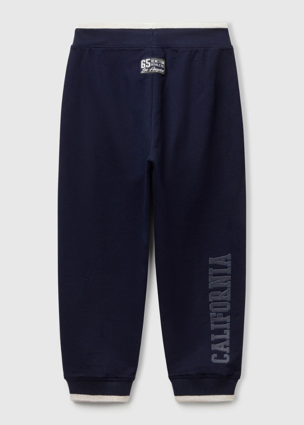 Long sweatpants in pure lightweight cotton. Relaxed fit with print on one leg. Waist with internal elastic and drawstring, inset pockets on the front. A comfortable, cosy and versatile garment.